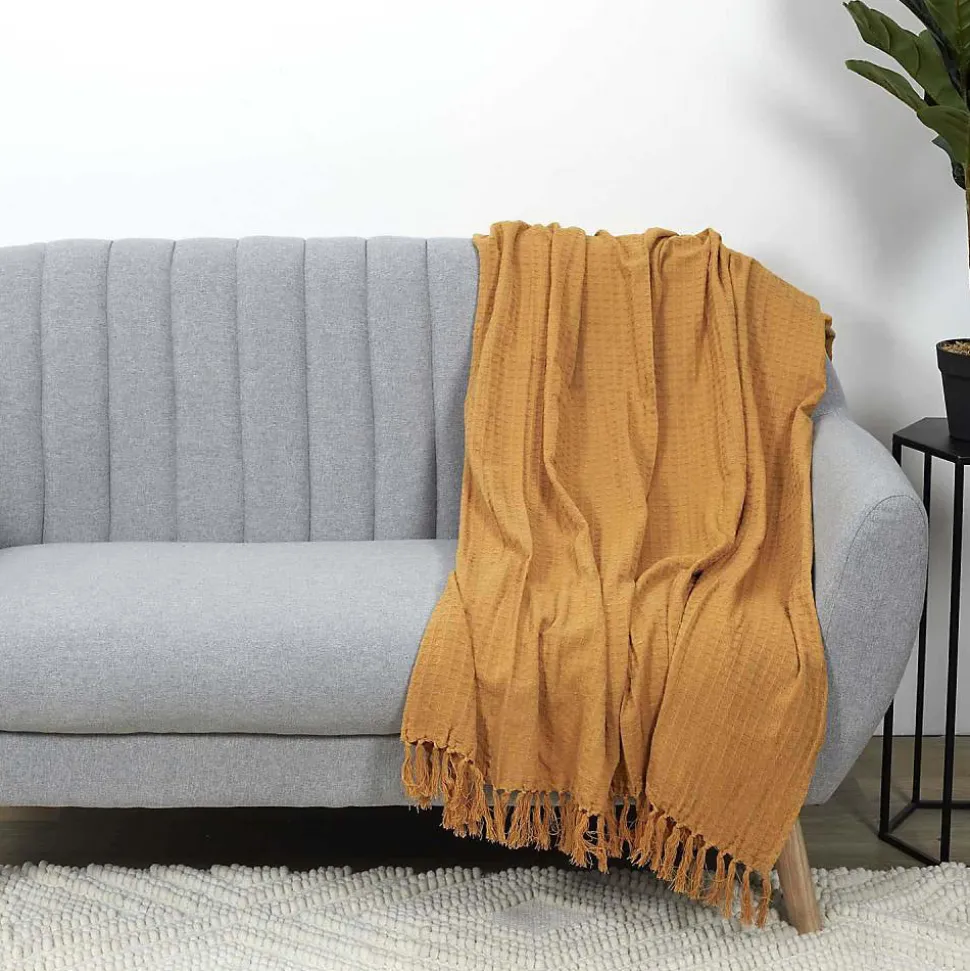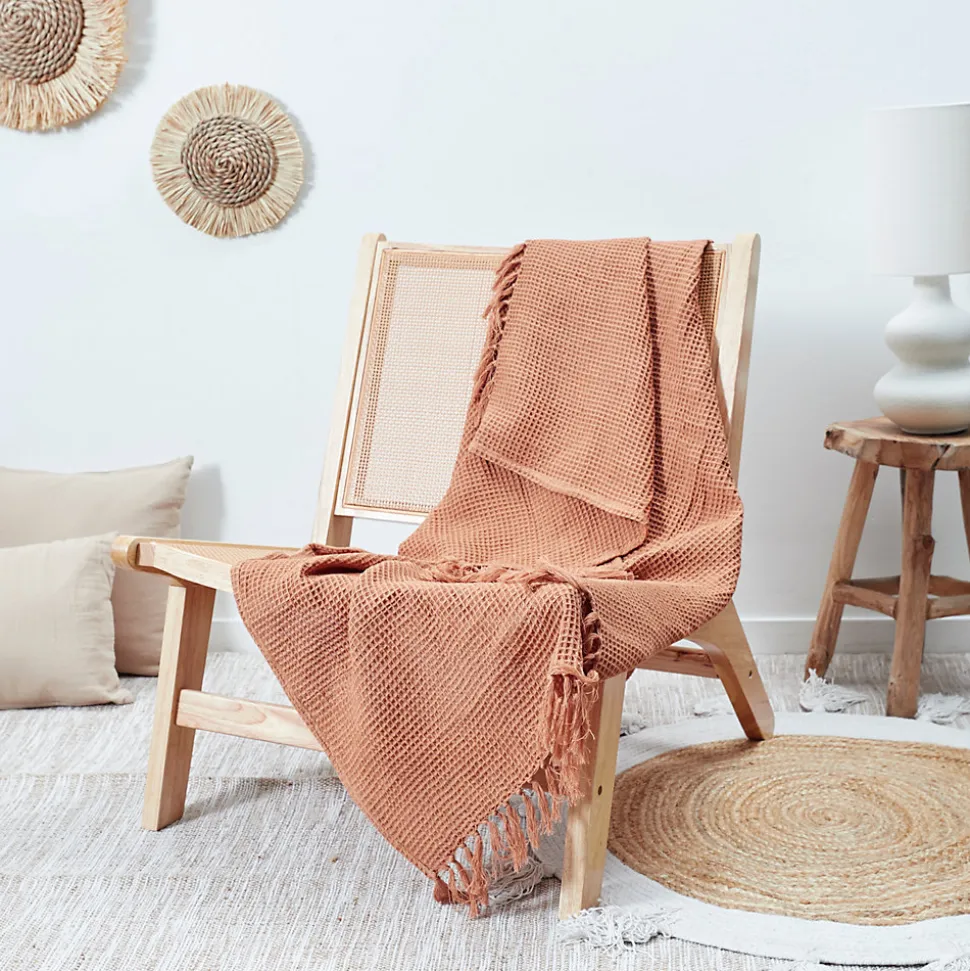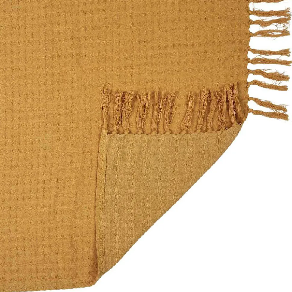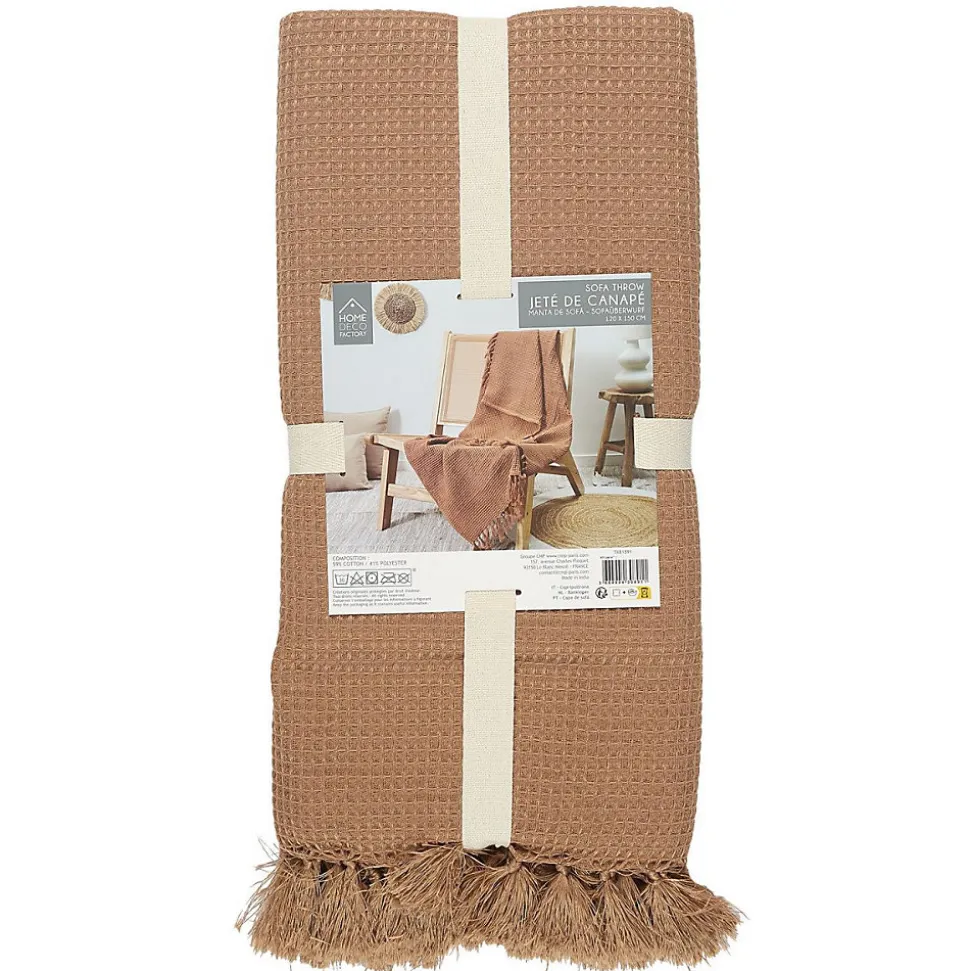 Aspect : Matériau principal = Coton • Dimensions : Hauteur (en cm) = 0,20 • Longueur (en cm) = 160 • Profondeur (en cm) = 130 • Autres caractéristiques : Informations complémentaires = Lavable en machine à 30°C , Sèche-linge et repassage interdit • Poids (en kg) = 0,60 • Jeté de canapé gaufré en coton 130 x 160 cm