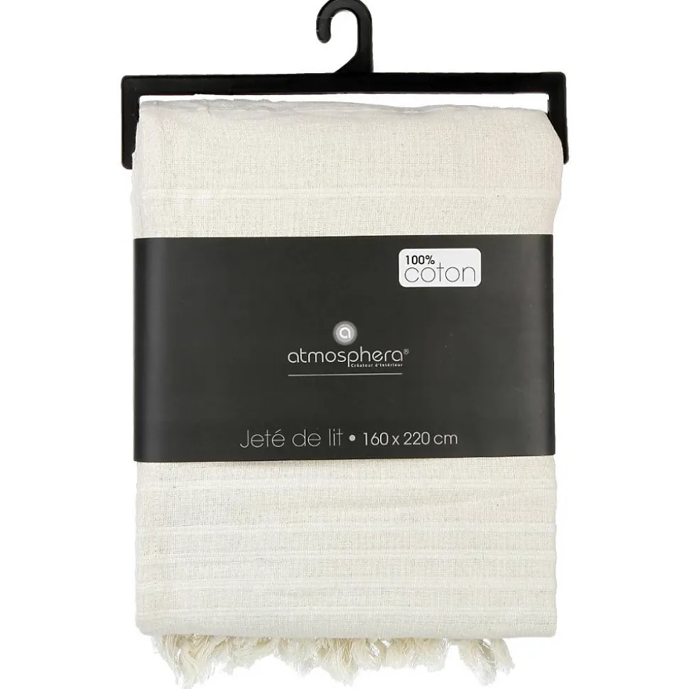 Jeté de lit en coton – ivoire 160×220 cm – Atmosphera