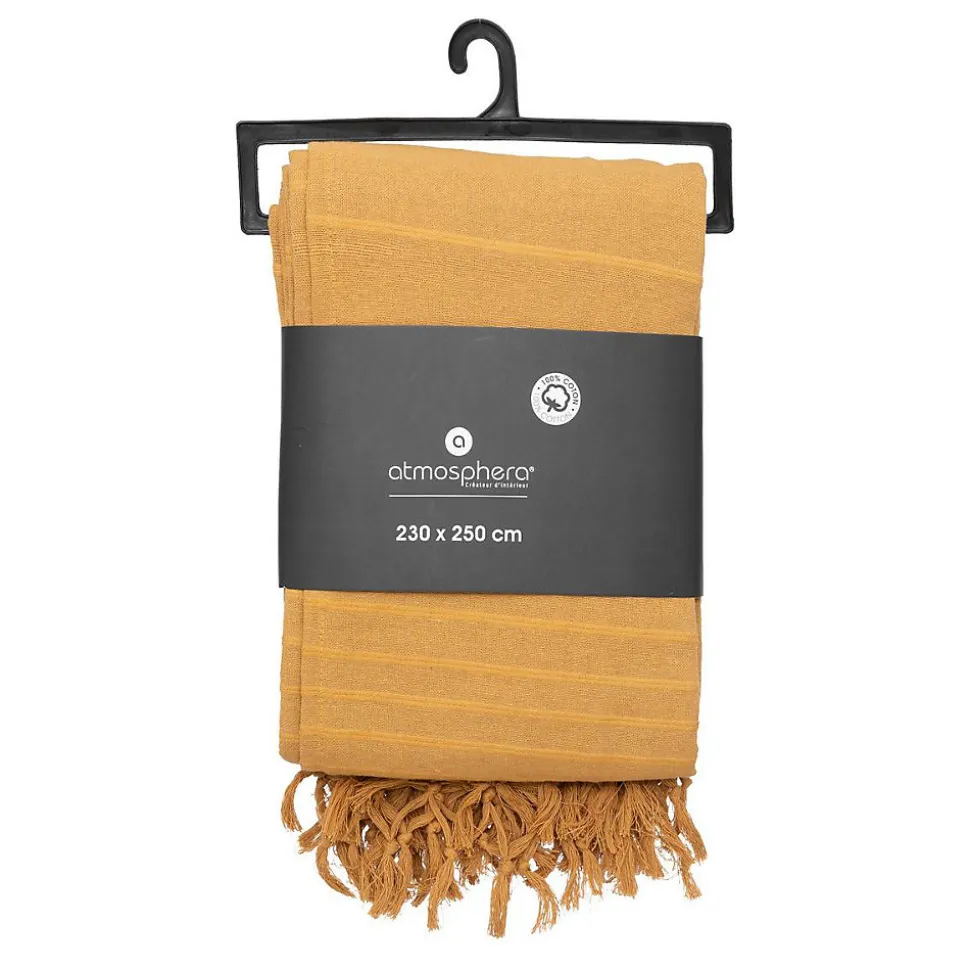Jeté de lit en coton – jaune moutarde 230×250 cm – Atmosphera