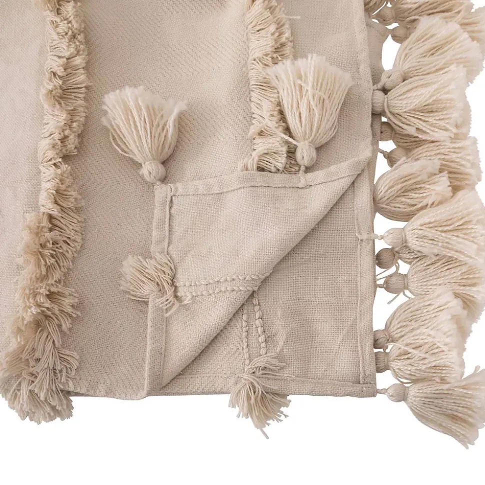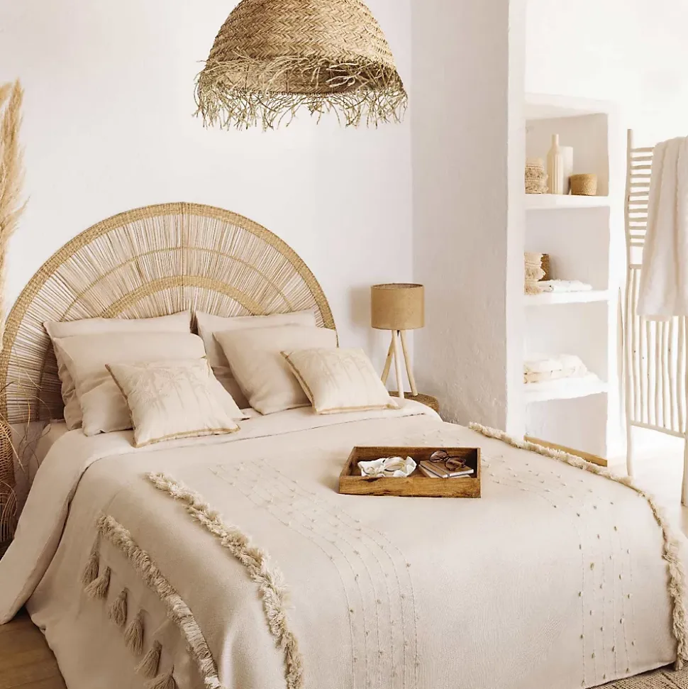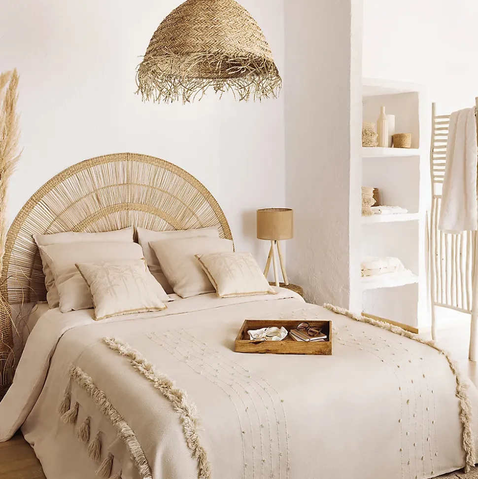 La jetée de lit « Row » Atmosphera s’invitera dans votre intérieur si vous affectionnez les matières naturelles et un style déco ethnique chic.Une touche de préciositéLa jetée de lit « Row » obéit à des dimensions parfaites pour un lit 2 personnes. Réalisée dans un tissage au fini naturel, elle est frangée et ornée de pompons ton sur ton aux extrémités. Vous pourrez la coordonner à du lin, du coton et du rotin pour créer une ambiance propice à la détente.Associez votre jetée de lit « Row » à une tête de lit en jute végétale Atmosphera afin de composer un ensemble harmonieux !Le petit plus décoChoisissez des coussins et une parure de lit aux notes exotiques pour parfaire votre déco.