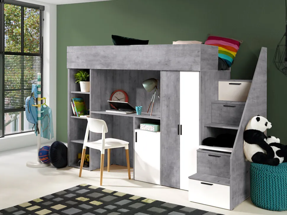 - KONKRET 14 Lit superposé 247/165/120 (béton/blanc)