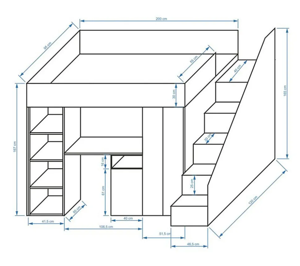 Meuble Multifonctionnel:Nous vous offrons un lit superposé avec bureau, grande armoire avec 3 étagères, petite armoire avec 3 étagères, une bibliothèque et des marchepieds avec battants orientés vers le bas et espace de rangement. Ce meuble moderne vous permettez d’avoir tous les objets nécessaires à portée de la main. Vous pouvez choisir la côté de lit pendant le montage. Lit Superposé pour Chambre Ado:Le lit superposé est un meuble nécessaire dans une chambre d’enfant ou d’adolescent. Cette option est très confortable, parce que vous pouvez optimiser l’espace de la chambre et gagner de la place, ce qui est excellent pour les petits espaces. Spécifications Techniques:largeur : 247 cm,hauteur : 165 cm,profondeur : 120 cm.Espace de couchage : 90 x 200 cm.longueur du plateau : 107 cm,largeur de l’armoire : 51 cm. Construction Solide:Le lit superposé est fabriqué en plateau stratifiée d’épaisseur 16 mm, chants finis avec un placage en PVC durable et résistant à l’usage quotidien, dos du meuble en panneau HDF, les tiroirs se déplacent sur des glissières à rouleaux, poignées en MDF. Livraison et Montage:Attention ! Notre entreprise de transport n’offert pas la possibilité de monter par l’escalier sur l’appartement et n’offert pas le service de montage. Les meubles sont livrés dans les paquets avec l’instruction de montage soi-même. La livraison est sur la palette. Information téléphonique sur la date de livraison. Veuillez demander un numéro de contact actualisé.