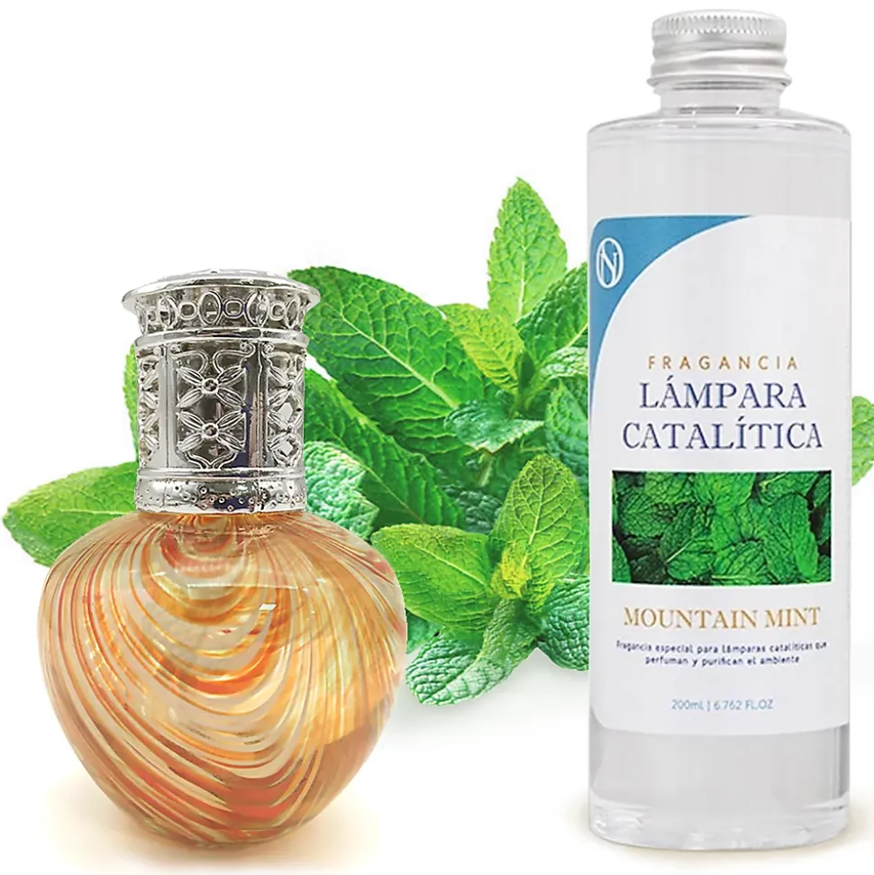 ❗ Pack Économique Lampe Catalytique Orange Waves + Parfum Mountain Mint 200 ml ❗Une lampe catalytique parfume et purifie l’air et élimine les odeurs tenaces telles que le tabac, les odeurs de cuisine, l’humidité, les animaux domestiques… Le système de désodorisant à lampe catalytique crée non seulement une ambiance parfumée, mais améliore également la qualité de l’air et embellit la pièce d’un design élégant. En seulement 20 à 30 minutes d’utilisation, la pièce sera parfumée pendant 2 heures. Lorsqu’elle est allumée, la pierre chauffe et génère une catalyse, qui décompose les particules odorantes et purifie l’environnement.⁉️ Comment utiliser une lampe catalytique ?1. REMPLIR LA LAMPE DE PARFUM : Retirez le bouchon décoratif et le capuchon et remplissez la lampe aux 3/4 avec le parfum choisi.2. PLACER LA MÈCHE DANS LA LAMPE : Insérez la mèche éteinte dans la lampe et laissez-la imprégner de parfum pendant environ 15 minutes.3. ALLUMER LA MÈCHE : À l’aide d’un briquet ou d’allumettes, allumez la mèche et laissez la flamme allumée pendant 2 minutes, jusqu’à ce qu’elle se réduise.4. ÉTEINDRE LE BRÛLEUR EN SOUFFLANT : Une fois la flamme réduite, soufflez pour l’éteindre complètement et remettez le capuchon décoratif.5. FIXER LA TÊTE DÉCORATIVE : Une fois la flamme éteinte, placez la tête décorative (avec les trous) sur la lampe à catalyse pour diffuser le parfum. Il est recommandé de l’utiliser pendant 20 à 30 minutes.6. ÉTEINDRE LA LAMPE CATALYTIQUE : Pour éteindre complètement la lampe catalytique, retirez le capuchon décoratif et remettez le capuchon métallique fermé, ce qui arrête la combustion.