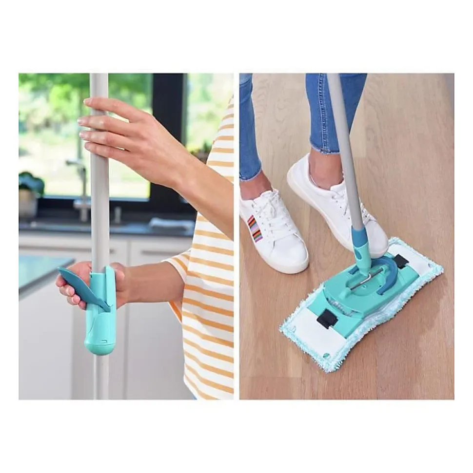Kit de nettoyage complet pour sols sensiblesLe LEIFHEIT Clean Twist M Ergo mobile 52121 est un système de lavage innovant conçu pour les sols délicats comme le parquet, le stratifié ou le bois massif. Son set inclut un balai plat ergonomique, une housse microfibre ultra-douce, un seau à essorage intégré et un chariot mobile pour un nettoyage sans effort.Technologie d’essorage révolutionnaireGrâce à son mécanisme de rotation breveté, le balai permet d’essorer la housse en position debout sans contact avec l’eau. La fonction spin-stop ajuste l’humidité idéale pour un nettoyage humide efficace tout en préservant vos sols. Le large pédalier déverrouille la platine sans nécessiter de se pencher.Ergonomie et polyvalenceLe manche télescopique réglable (110-140 cm) et le joint rotatif à 360° permettent d’atteindre les recoins difficiles sous les meubles. La fixation velcro-pocket maintient fermement la housse pendant l’essorage, tandis que le chariot compact simplifie le rangement et le transport.Durabilité et hygiène optimaleLa housse microfibre lavable 200 fois à 60°C offre une longévité exceptionnelle. Le seau de 6 litres avec poignées ergonomiques et bec verseur facilite le vidage. Le système anti-basculement et le clip de rangement intégré garantissent une utilisation sécurisée.LEIFHEIT, marque allemande réputée depuis 1959, est spécialiste des équipements ménagers innovants. Reconnue pour son expertise en ergonomie et la qualité de ses matériaux, elle allie ingénierie précise et durabilité.Manche télescopique réglable avec technologie de rotation brevetéeHousse microfibre lavable 200 cycles (60°C) pour sols sensiblesSeau de 6 litres avec essoreur intégré et système anti-renversementJoint rotatif 360° pour nettoyage sous les meublesChariot mobile compact pour rangement et transport aisé