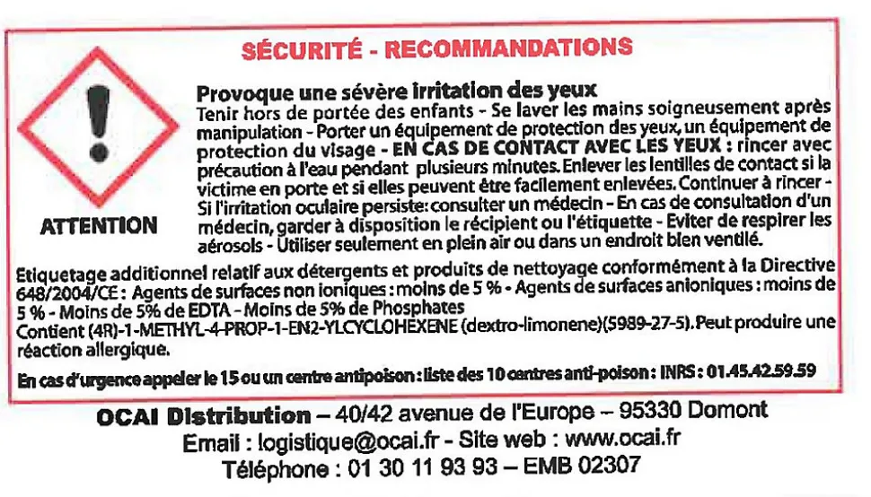 Rénovocai lessive 1 litre. Le Rénovocai lessive, dégraisse, nettoie à la main en pulvérisateur ou en machine haute-pression (autolaveuse). Formule déposée au centre antipoison.