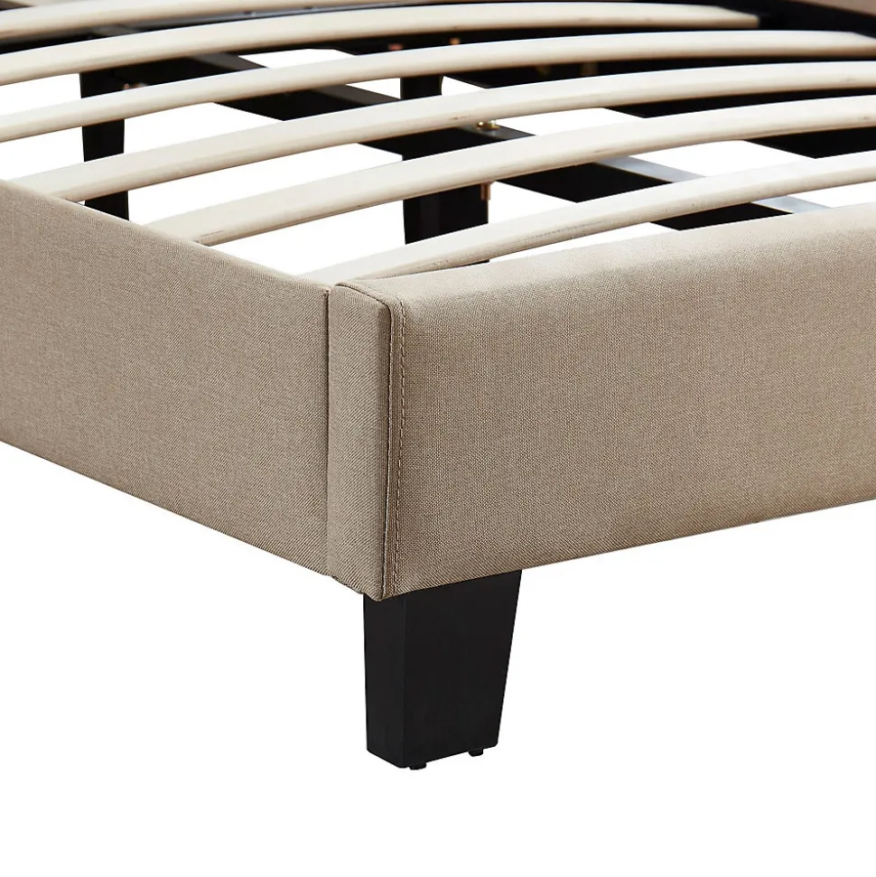 - La structure du lit est recouverte dun revêtement en tissu capitonné, de coloris beige