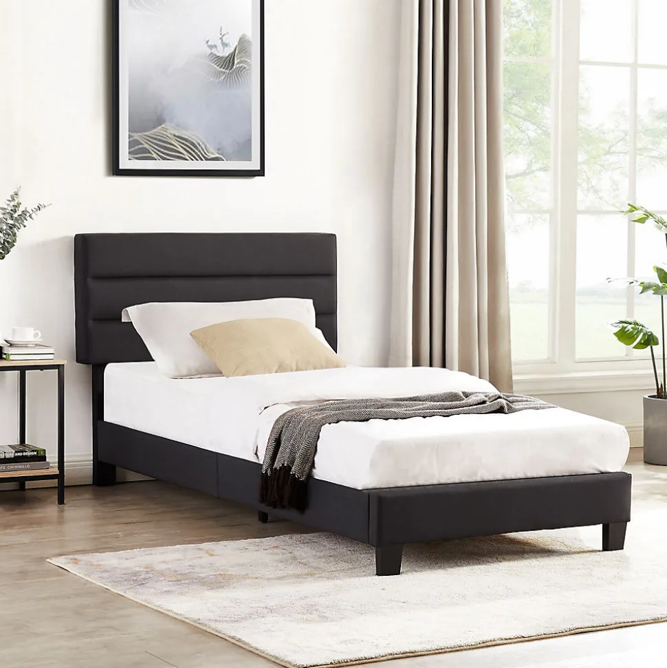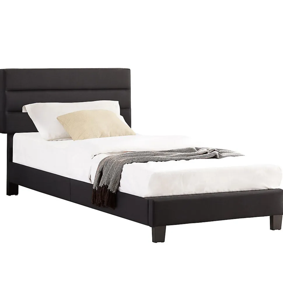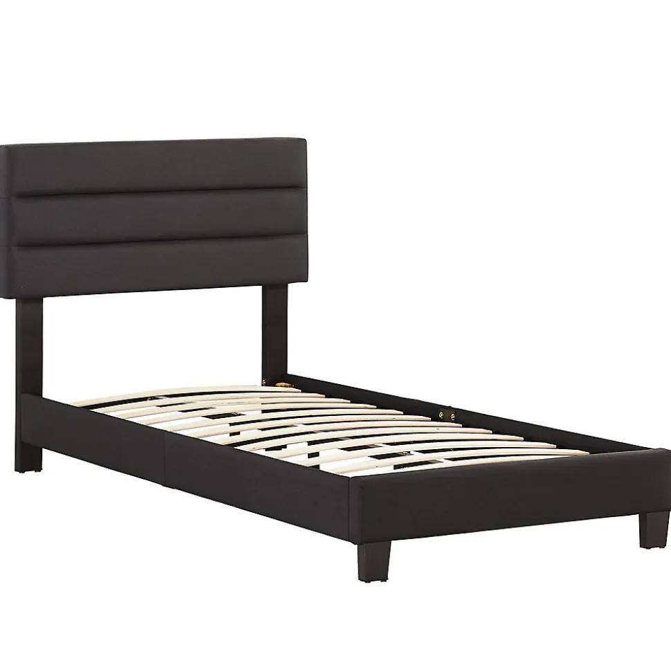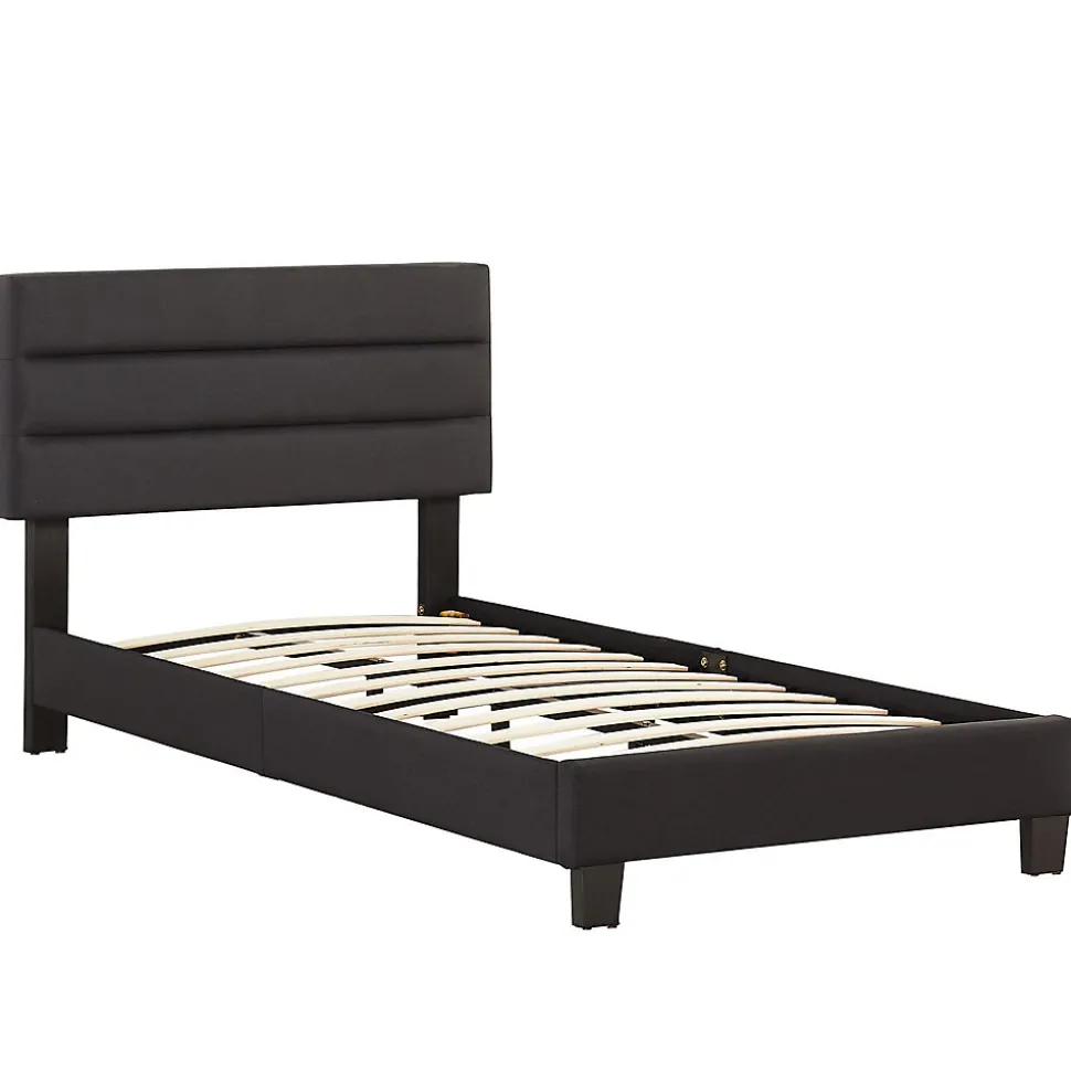 - La structure du lit est recouverte dun revêtement en tissu capitonné, de coloris noir