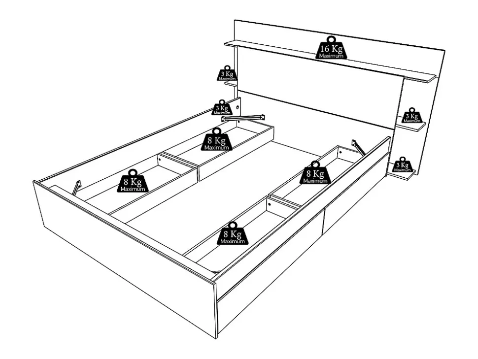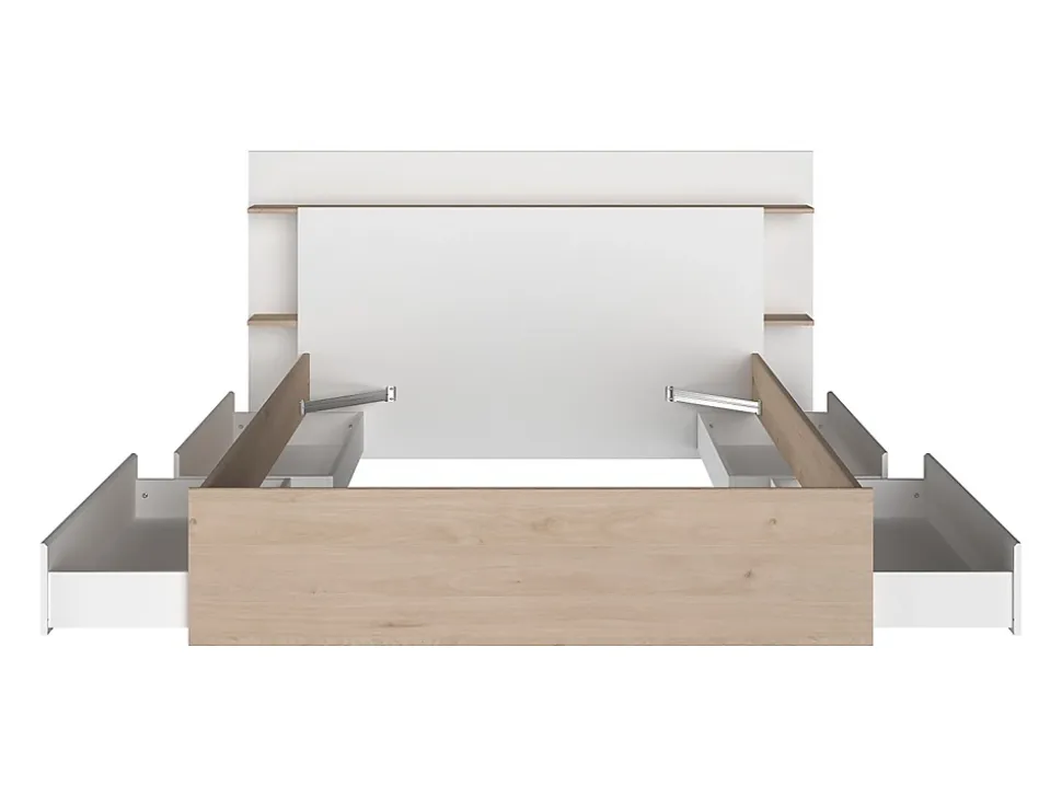 - Lit 140 x 190/200 cm avec 4 tiroirs – Structure : Panneaux de particules – Coloris : Naturel et blanc – Dimensions : L184 x P221,5 x H96,6 cm – Style : Moderne + Sommier + Matelas – Confort et rangement optimisés avec TILONIDE !