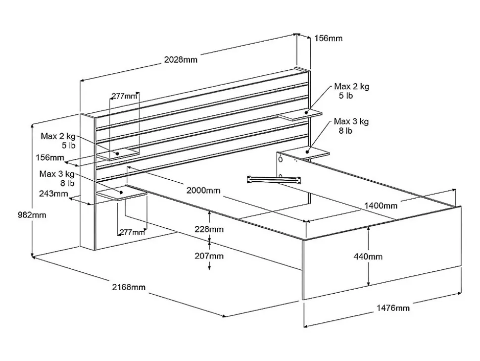 - Finition mélaminée résistante à la chaleur, Chevet intégré, Multiples rangements intégrés, Possibilité de choisir la taille du couchage au moment du montage, Design épuré