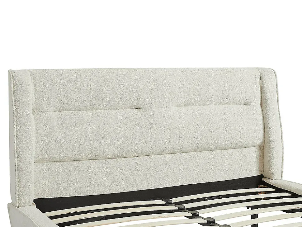 - Lit 140 x 190 cm – Structure : Contreplaqué – Revêtement : Tissu bouclette – Coloris : Beige – Dimensions : L162 x P210 x H99 cm – Style : Intemporel – ISYDE, le lit en bouclette qui allie douceur, style et intemporalité !
