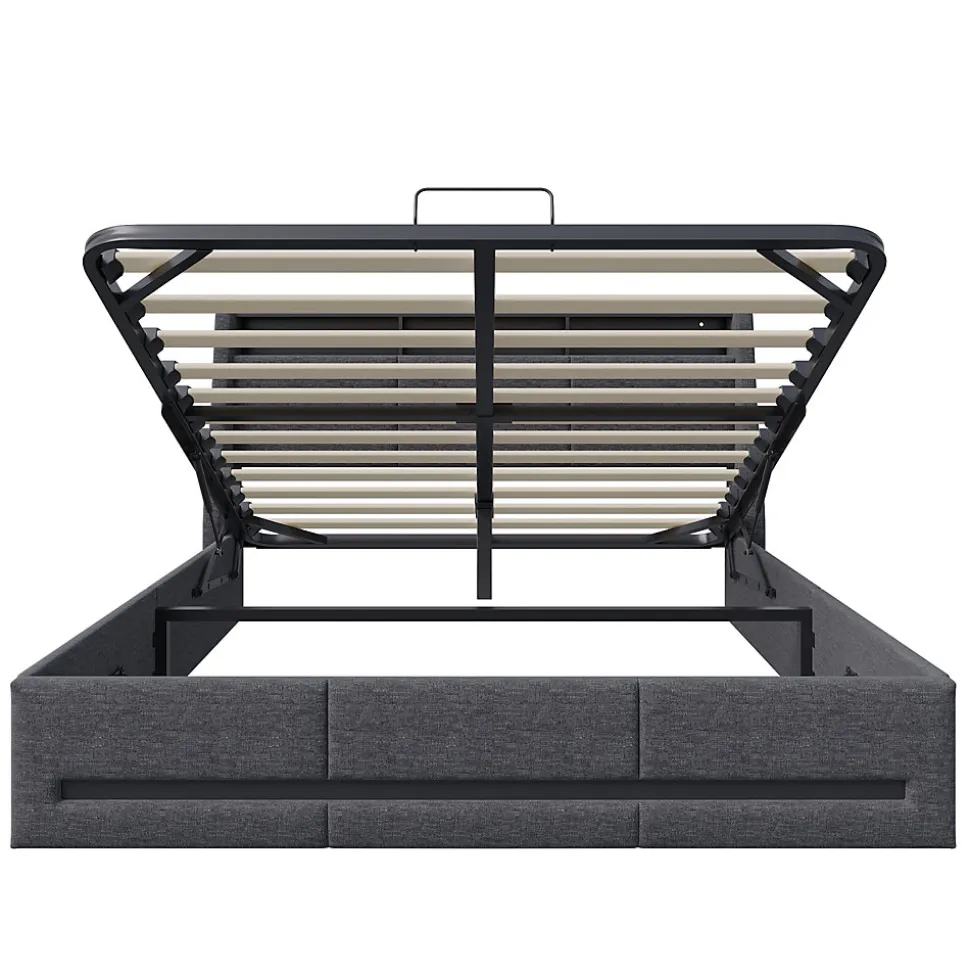 【Éclairage LED Ambiance】: Imaginez-vous allongé dans ce lit, plongé dans une atmosphère chaleureuse et apaisante grâce à sa barre LED intégrée autour de la tête de lit. Que ce soit pour une lecture nocturne ou pour créer une ambiance tamisée, l’éclairage LED réglable vous offre une expérience technologique et design unique. Ce lit est l’allié parfait pour ceux qui souhaitent un espace de sommeil à la fois moderne et confortable.【Tête de lit avec ports USB et Type-C】: Fini les câbles encombrants ! Cette tête de lit révolutionnaire est équipée d’une prise avec port standard européen, ainsi que de ports USB et Type-C. Vous pouvez désormais recharger votre téléphone, votre tablette ou tout autre appareil électronique sans quitter le confort de votre lit. Que vous souhaitiez vous détendre pour regarder un film ou travailler confortablement depuis votre chambre, cette tête de lit est l’accessoire idéal pour une vie moderne et pratique. 【Lit pratique avec rangement】: Ce lit est une véritable solution pour les petits espaces. Grâce à son système de levage hydraulique double, il offre un espace de rangement considérable sous le matelas. C’est particulièrement adapté aux petites maisons ou appartements avec un espace limité. Vous pouvez ranger vos vêtements, vos chaussures, voire des couvertures supplémentaires, sans sacrifier le confort de votre lit. Ce lit est l’option idéale pour ceux qui cherchent à optimiser leur espace tout en profitant d’un lit confortable.【Étagère fonctionnelle】: L’étagère intégrée au-dessus de la tête de lit est un véritable atout. C’est l’endroit idéal pour garder votre livre de chevet, votre réveil ou votre magazine favori. Elle sert également de rangement pour les petits appareils électroniques, gardant tout à portée de main. Cette étagère ajoute une touche d’élégance et de fonctionnalité à votre espace de sommeil, vous permettant de rester organisé tout en profitant d’un design élégant.
