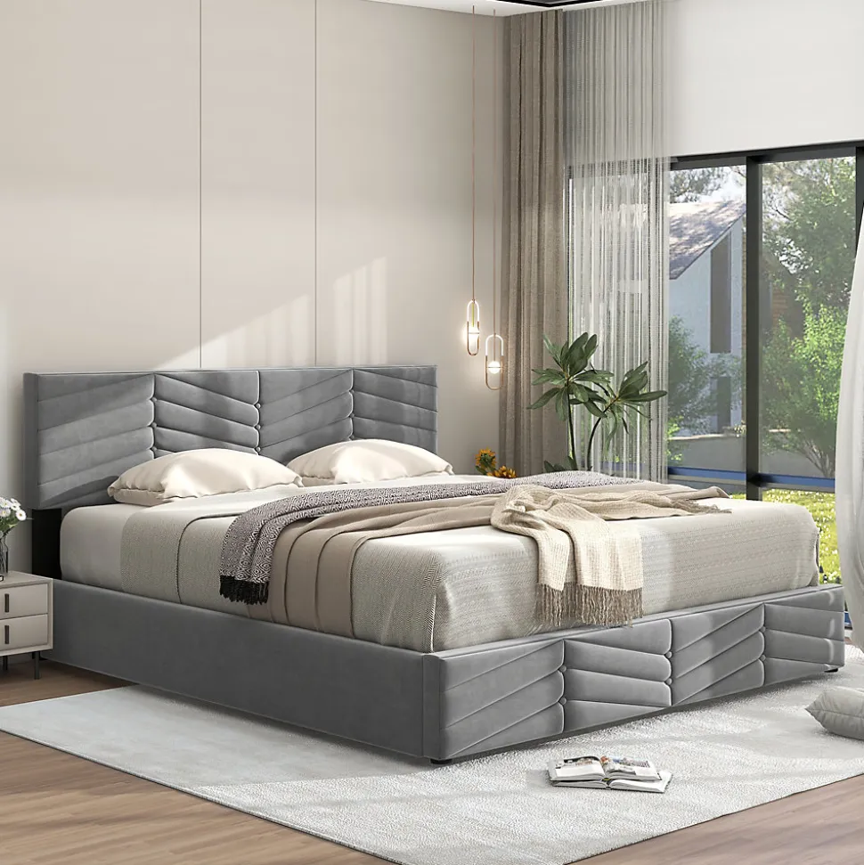 - Design européen en velours gris, tête et pied ornés de rayures et de boutons pour une allure sobre et raffinée ; apporte chaleur et confort visuel à la chambre.