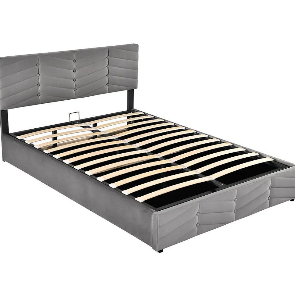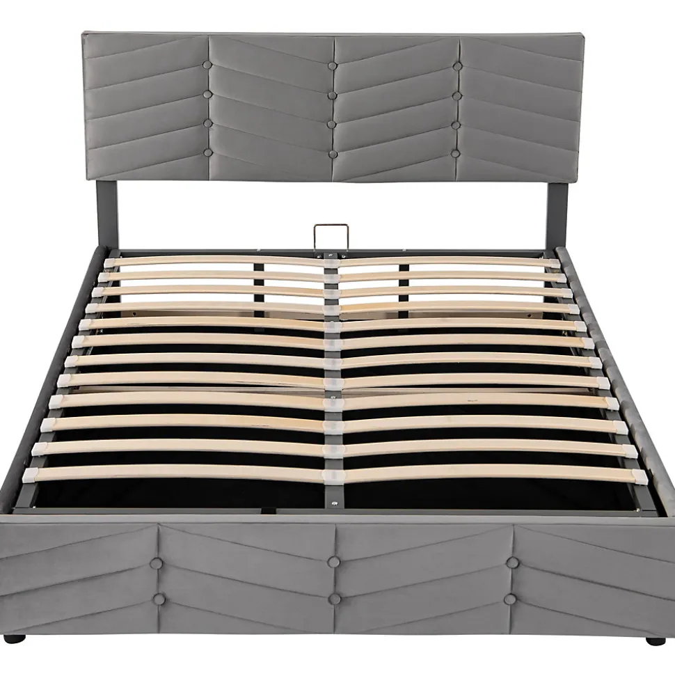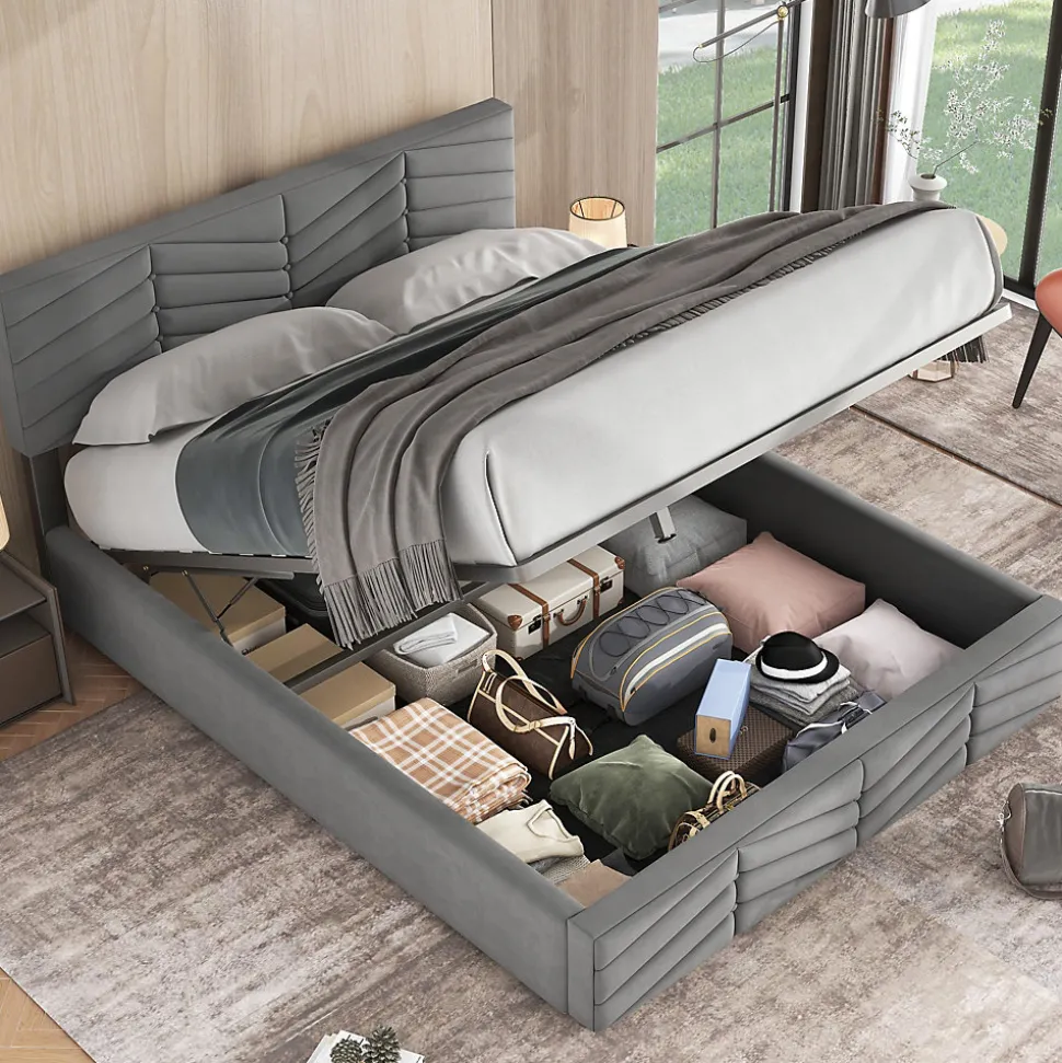 Design & styleCe lit en velours gris combine un style européen contemporain et des détails décoratifs à rayures et boutons sur la tête et le pied. Sa finition douce et son large dossier offrent une assise confortable pour lire ou se détendre, tout en apportant une présence chaleureuse et élégante à la chambre.Fonctionnalité & rangement Système de rangement par ouverture hydraulique : le sommier se lève facilement pour accéder à un vaste coffre de rangement sous le lit, pratique pour linges de lit, couvertures et vêtements. Conception pensée pour un usage quotidien : accès simple et sécurisé grâce au mécanisme assisté, permettant d’optimiser l’espace de la chambre.Matériaux & entretienRevêtement en velours doux, mousse de garnissage confortable et structure interne solide. Surface facile d’entretien : dépoussiérer à l’aide d’un aspirateur à faible puissance ou nettoyer avec un chiffon humide. Eviter les produits agressifs.Dimensions & spécifications Type de produit : Lit tapissé sans matelas, sommier à lattes inclus Dimensions du lit : 140×190 cm (taille du couchage) Dimensions produit : 190×145,5×90-95 cm (longueur x largeur x hauteur ; tête de lit réglable de 90 à 95 cm) Hauteur réglable de la tête de lit : ajustable de ±5 cm pour s’adapter aux besoins de confort Poids net : 37 kg • Capacité maximale recommandée : 300 kgInstallation & livraisonProduit livré démonté en 2 colis pouvant arriver séparément. Montage requis, deux personnes recommandées pour un assemblage sûr et rapide selon la notice fournie. Matelas non fourni. En cas de question lors du montage, contacter le service indiqué sur la notice.