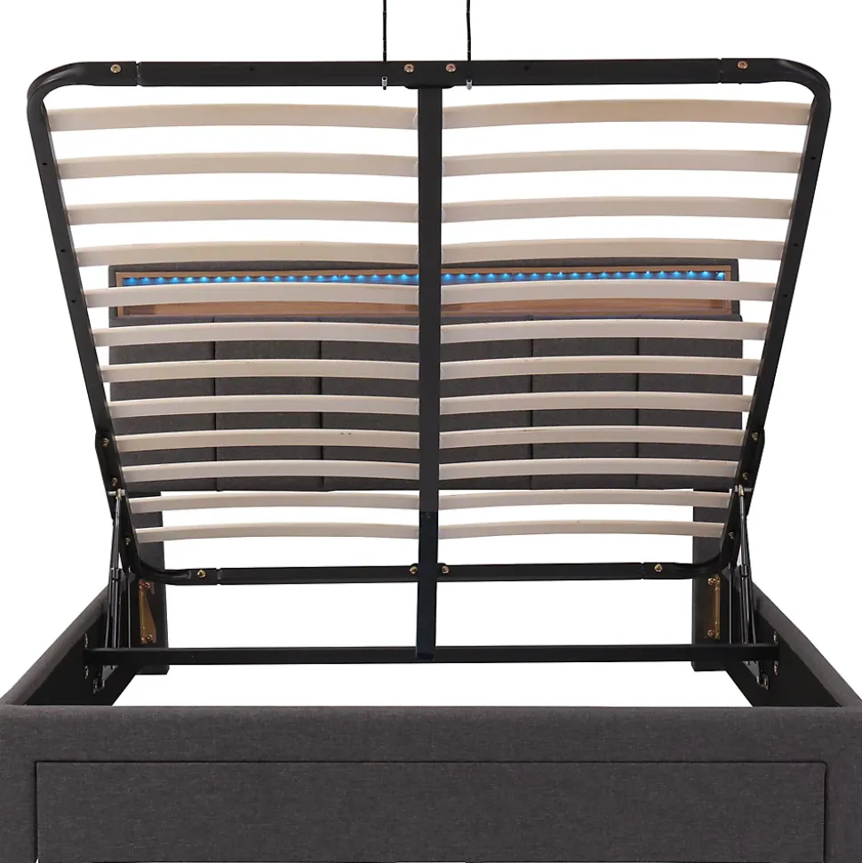 Design & styleCe lit 140×190 cm tapissé en tissu effet lin gris combine lignes contemporaines et confort visuel adapté aux chambres d’adolescents et aux jeunes adultes. La tête de lit rembourrée sert d’appui confortable pour la lecture ou le visionnage et intègre un éclairage LED facile à utiliser via télécommande, permettant d’ajuster l’intensité et la couleur pour créer différentes ambiances selon l’activité ou l’heure.Fonctionnalité & rangement Espace de rangement généreux sous le sommier, idéal pour organiser couettes, oreillers et affaires saisonnières et optimiser l’espace de la chambre. Sommier à lattes en bois inclus, conçu pour assurer une bonne circulation de l’air entre la matelas et le sommier afin de limiter l’humidité et améliorer le confort de couchage. Matelas non fourni. Conception pensée pour un usage quotidien avec une capacité de charge maximale recommandée de 300 kg.Matériaux & entretienLa structure associe acier pour la robustesse et panneaux MDF pour les éléments de cadre, recouverts d’un tissu effet lin respirant. Le tissu favorise l’aération et contribue à un climat de sommeil plus frais en saison chaude. Pour l’entretien, dépoussiérez régulièrement et procédez à un nettoyage ponctuel à l’aide d’un chiffon doux ; évitez les produits agressifs ou blanchissants pour préserver les finitions.Installation & emballageProduit livré démonté en 2 colis et nécessitant un montage. Deux personnes sont recommandées pour l’assemblage afin d’assurer une installation sûre et stable. Les pièces et la notice sont fournies dans l’emballage ; les colis peuvent arriver séparément, merci de patienter en cas de réception différée.Informations complémentairesDimensions de la surface de couchage : 140×190 cm. Pieds de 8 cm pour un bon maintien et une circulation d’air sous le lit ; éléments de cadre d’environ 5 cm d’épaisseur pour une assise stable. Modèle livré sans matelas, avec sommier à lattes inclus. Couleur dominante : gris.