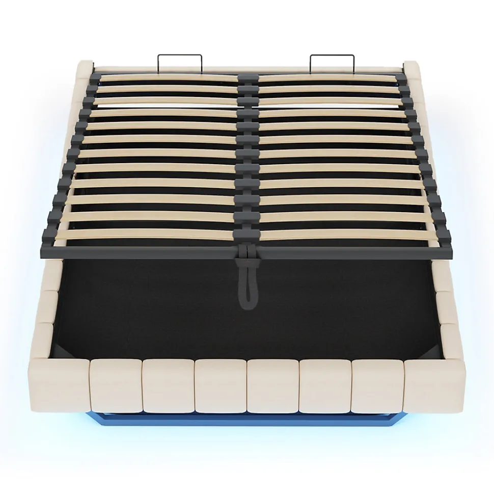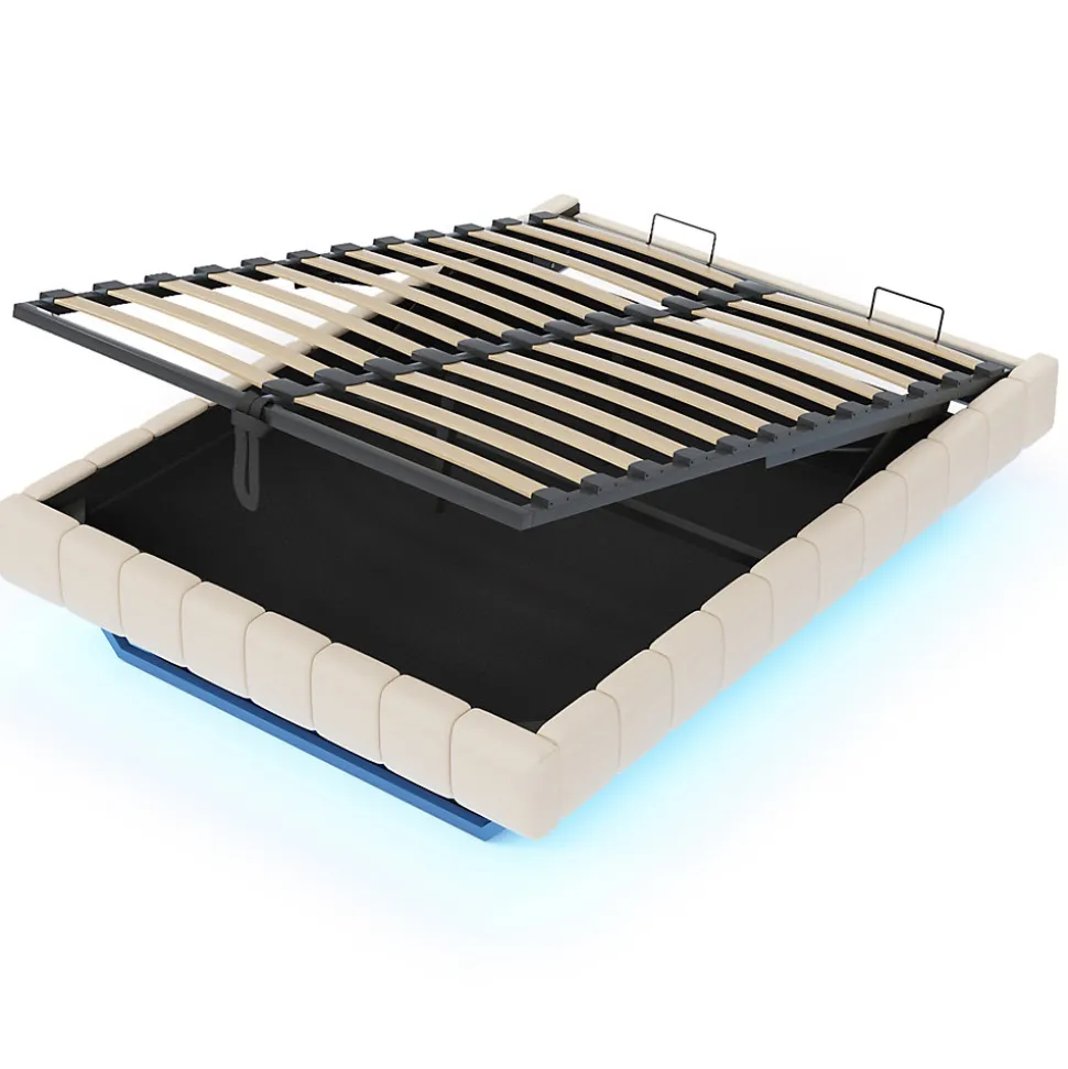 Design & styleCe lit tapissé offre un design contemporain avec un élégant effet flottant et une bande LED multicolore intégrée, réglable pour créer différentes ambiances lumineuses. Conçu sans tête de lit fixe, il s’adapte facilement à votre décoration.Fonctionnalité & rangement Système de levage hydraulique performant permettant d’accéder à un grand espace de rangement sous le sommier, idéal pour ranger couettes, oreillers et affaires saisonnières. Format lit 140×200 cm conçu pour optimiser l’utilisation de la pièce ; recommandation : vérifier l’image des dimensions avant montage. Capacité de charge élevée pour un usage quotidien, sans restriction particulière sur l’épaisseur de la matelas.Matériaux & constructionStructure composée de métal, panneaux en contreplaqué et MDF, sommier à 12 lattes et revêtement en tissu lin beige, agréable au contact et résistant à l’usure. Cadre solide offrant une capacité de charge maximale de 250 kg.Entretien & confortLe tissu en lin est aéré et facile à entretenir : dépoussiérage régulier et nettoyage local avec un chiffon humide. La conception propose un confort visuel et une finition propre adaptée aux intérieurs minimalistes ou contemporains.Installation & emballageMontage requis, deux personnes recommandées. Produit livré en 2 colis (poids total du colis env. 38 kg, poids net produit env. 33 kg). Durée de montage estimée : environ 2 heures ; notice et outils nécessaires fournis.