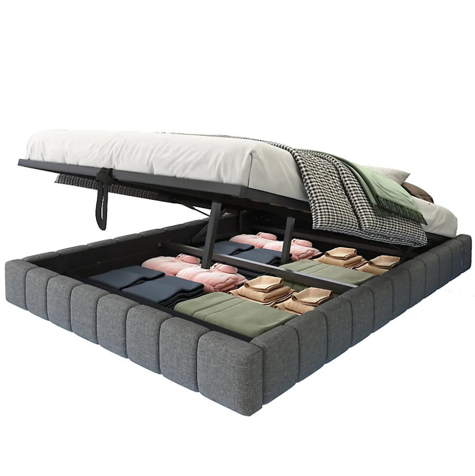 Design & styleCe lit tapissé propose une esthétique moderne et épurée avec un effet flottant qui allège visuellement la pièce. Le revêtement en tissu lin gris apporte une finition chaleureuse et un toucher agréable, s’adaptant à un intérieur scandinave, contemporain ou minimaliste. L’éclairage LED multicolore intégré est réglable pour favoriser une ambiance détendue ou plus dynamique selon l’usage.Fonctionnalité & rangement Sommier muni d’un système à vérin hydraulique pour accéder très facilement à un vaste espace de rangement sous le cadre, utile pour linge de lit, couvertures et rangements saisonniers. Structure conçue pour optimiser le volume utile de la chambre et faciliter l’organisation sans compromettre l’esthétique. Conception sans tête de lit fixe : possibilité d’ajouter différents types de têtes selon le style souhaité et l’espace disponible.Matériaux & entretienStructure en métal robuste associée à panneaux et MDF, recouverte d’un tissu en lin respirant, agréable au toucher et résistant à l’usure. Le cadre est conçu pour une charge maximale de 250 kg et intègre 12 lattes pour un soutien uniforme. Pour l’entretien, dépoussiérez régulièrement et nettoyez les salissures ponctuelles avec un chiffon doux légèrement humide.Dimensions & informations techniquesTaille du couchage : 140 x 200 cm. Dimensions extérieures : 201 x 141 x 31 cm. Poids du produit : environ 33 kg ; poids total des colis : environ 38 kg. Nombre de colis : 2. Produit disponible en plusieurs tailles selon vos besoins.Installation & emballageMontage requis, réalisé en environ 2 heures par deux personnes ; tous les éléments et outils nécessaires sont fournis (tournevis inclus). Le lit est livré en deux colis pouvant arriver séparément. Son assemblage et son usage quotidien offrent une solution pratique et stable pour optimiser le rangement et l’ambiance de la chambre.