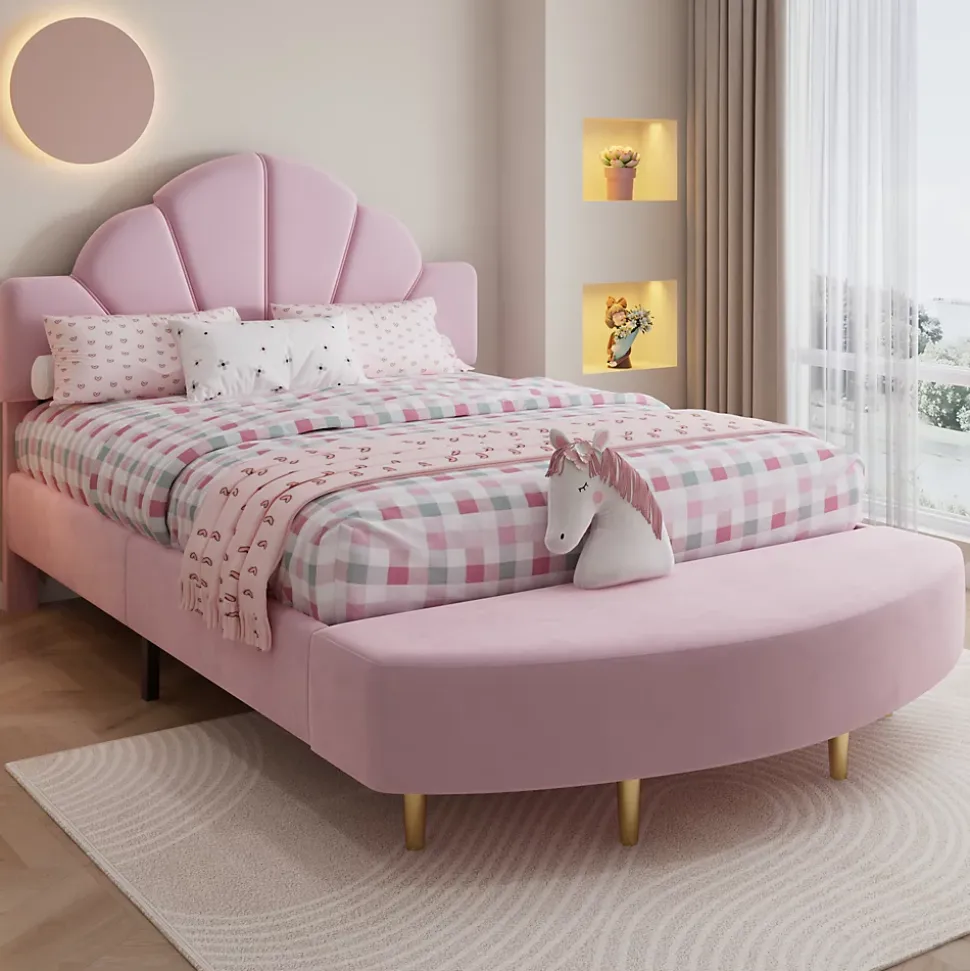Design & styleCe canapé au revêtement velours rose mise sur une silhouette raffinée et chaleureuse : la tête de lit moelleuse et la banquette assortie créent un ensemble coordonné et accueillant, idéal pour aménager une chambre ou un espace détente au style contemporain, scandinave ou sophistiqué.Confort & couchageDimension du couchage : 140×200 cm (matelas non fourni, épaisseur recommandée ≤21,5 cm).Bords anti-collision en mousse douce pour limiter les chocs et augmenter le confort d’utilisation au quotidien.Capacité d’utilisation adaptée à un usage régulier : structure pensée pour offrir soutien et stabilité (charge utile indiquée ~136 kg).Matériaux & entretienRevêtement en velours agréable au toucher, structure en contreplaqué avec éléments métalliques et rembourrage mousse. Surfaces faciles à entretenir : nettoyage ponctuel à l’aide d’un chiffon doux et brossage délicat pour préserver la texture du velours.Installation & emballageMontage requis, notice et toutes les pièces fournies ; deux personnes recommandées pour l’assemblage. Produit livré en 2 colis (poids total environ 39 kg), les colis peuvent arriver séparément. Origine Chine, composant bois certifié.Dimensions & informations pratiquesDimensions totales annoncées : 240,5×149,5×109,5 cm (ensemble incluant la banquette). Matériaux principaux : velours, contreplaqué, métal et mousse. Matelas non inclus.