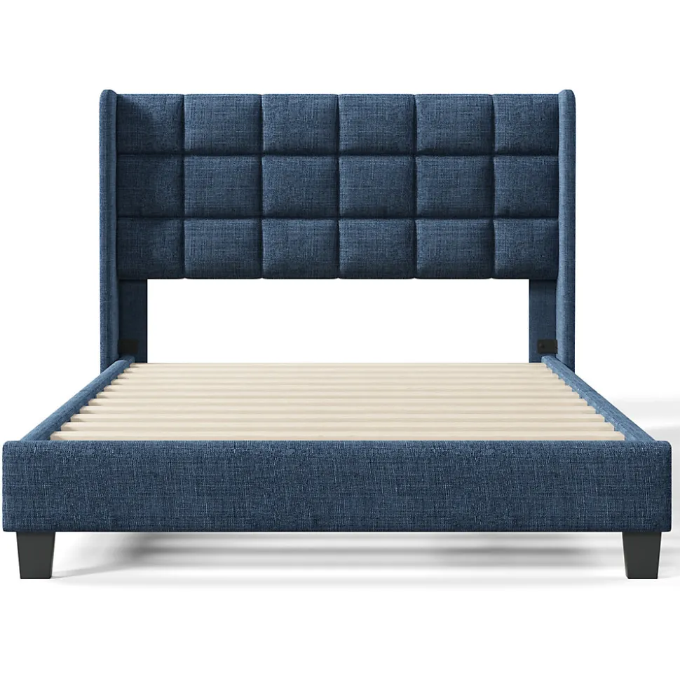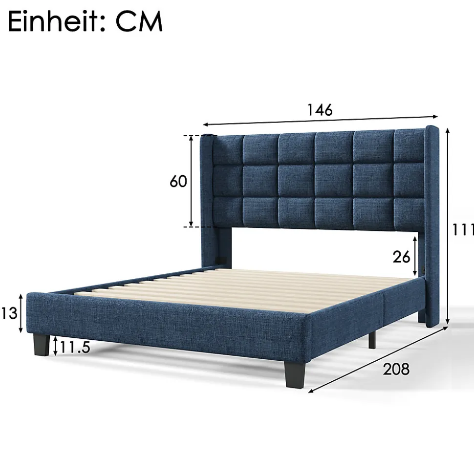 - Design intemporel et élégant avec tête de lit haute tapissée en lin bleu et pieds noirs, lignes épurées qui s’intègrent à divers styles de chambre et favorisent la détente.