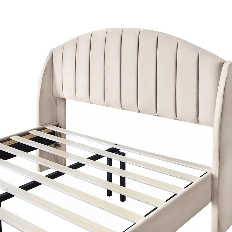Design & styleCe lit tapissé en velours beige associe un look classique et contemporain pour s’intégrer facilement à différents décors. Sa teinte neutre et ses lignes épurées apportent une ambiance chaleureuse tout en ouvrant visuellement l’espace. Conçu pour un couchage 140×200 cm, il convient aux adolescents comme aux adultes.Fonctionnalité & confort Sommier à lattes en bois réduisant les bruits et prolongeant la durée de vie du matelas. Barre médiane stabilisante et renforts complémentaires pour une assise et un couchage stables. Pieds de 20 cm permettant une bonne circulation d’air sous le lit et un maintien fiable, capacité d’accueil jusqu’à 300 kg.Tête de lit & usageLa tête de lit haute et bien rembourrée offre un appui confortable pour lire ou regarder la télévision. Le velours, à la texture fine, est doux au toucher et conçu pour ne pas irriter la peau, pour un confort quotidien agréable.Matériaux & entretienRevêtement en velours, sommier à lattes en bois et structure renforcée pour une bonne durabilité. Poids du produit : 30,2 kg. Pour l’entretien, nettoyer avec un chiffon doux et éviter les produits abrasifs afin de préserver l’aspect et la texture du tissu.Installation & emballageMontage requis, notice claire fournie ; deux personnes sont recommandées pour l’assemblage. Produit livré en 2 colis depuis la Chine ; les colis peuvent arriver séparément. Outils de base nécessaires pour le montage.
