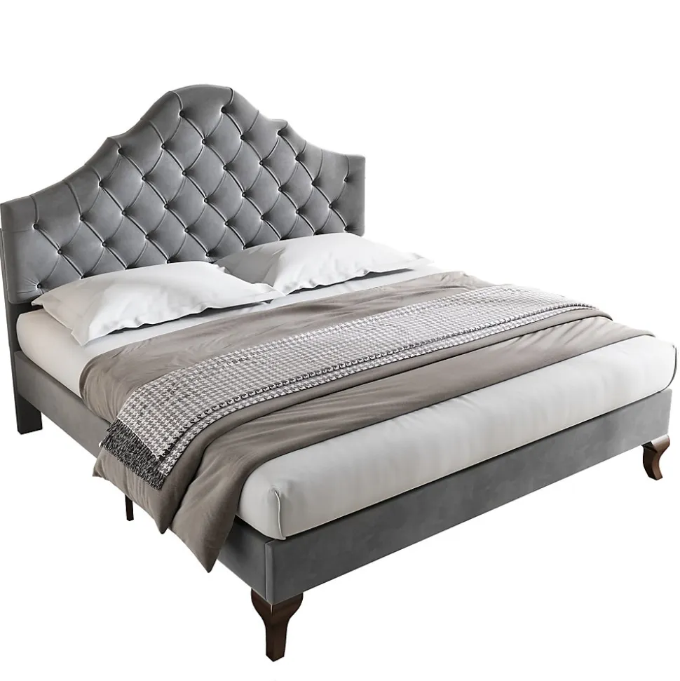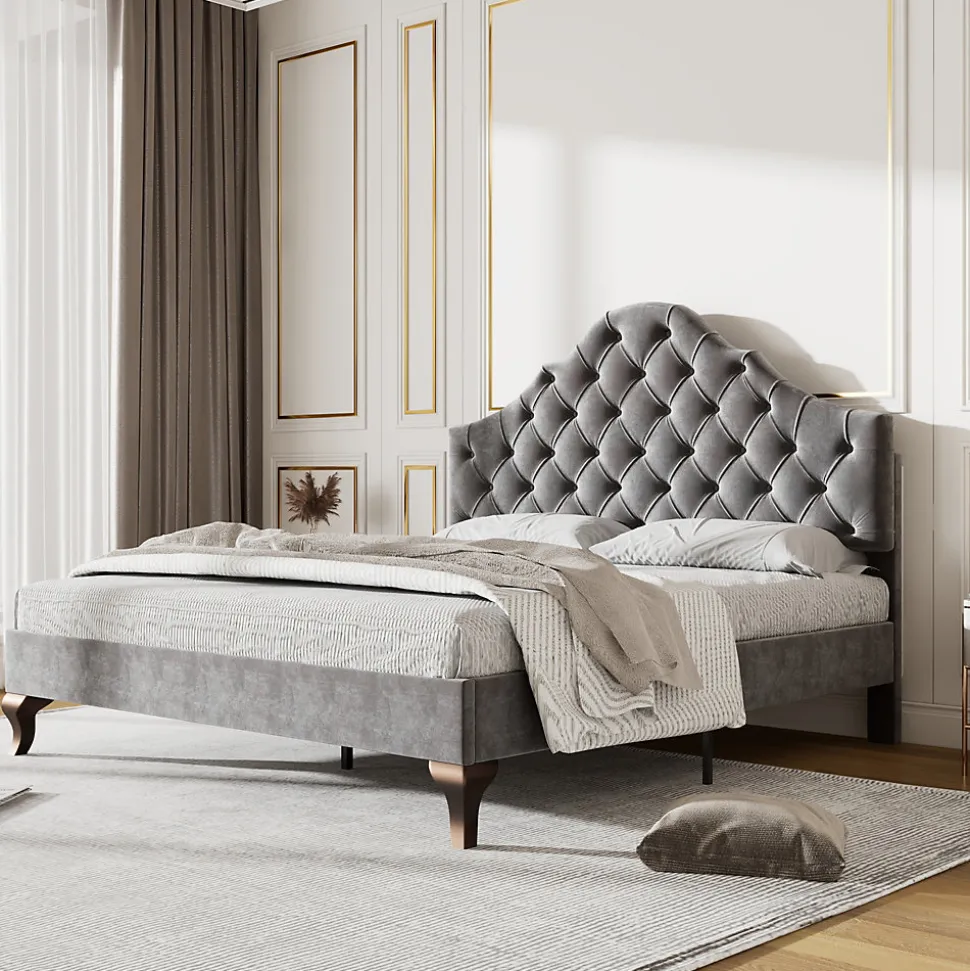 - Design mêlant lignes classiques et actuelles, revêtement velours gris et tête capitonnée à boutons, offrant un appui confortable pour la lecture et une allure discrète qui s’intègre à tous les styles de chambre.