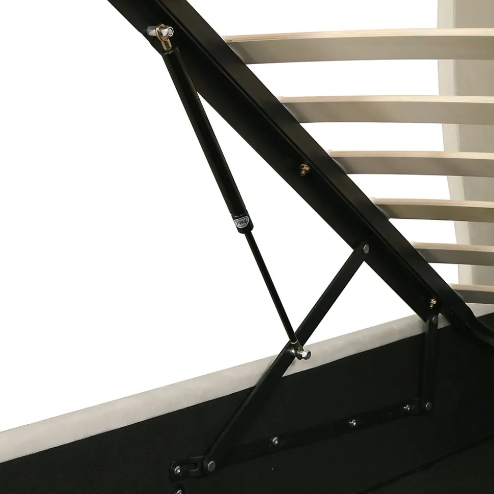 - Coffre à ouverture hydraulique facilitant l’accès à un grand espace de rangement sous le sommier, idéal pour couettes et oreillers. Plancher intérieur en tissu protégeant le contenu de l’humidité.