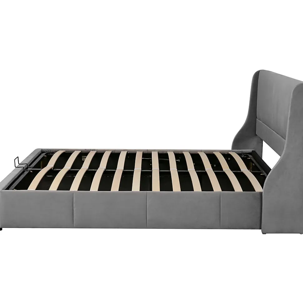Design & styleCe lit 160×200 cm combine un langage classique et des lignes contemporaines. Revêtu d’un velours gris, il dispose d’une tête de lit capitonnée qui confère une présence discrète et chaleureuse à la chambre. Le tissu peut varier légèrement selon l’éclairage et l’orientation du poil, offrant des nuances subtiles à différents moments de la journée.Fonctionnalité & rangement Grand coffre de rangement équipé d’un système hydraulique pour soulever facilement le matelas et accéder à un volume utile important. Espace adapté au rangement du linge de lit, des oreillers et des vêtements saisonniers afin d’optimiser l’organisation de la pièce. Vérins étudiés pour la fiabilité et une utilisation répétée avec un maniement sécurisé.Matériaux & entretienRevêtement en velours (flanelle) et structure réalisée avec une finition soignée ; coutures précises pour une meilleure tenue dans le temps. Pour préserver l’aspect du velours, dépoussiérer régulièrement, tamponner les taches avec un chiffon humide et, si nécessaire, lisser le tissu dans le sens du poil avec un fer vapeur à distance. Éviter les frottements agressifs pour limiter les marques.Dimensions & informations pratiquesSurface de couchage : 160×200 cm. Charge maximale recommandée : 300 kg. Produit livré sans matelas. Toutes les dimensions sont indicatives.Installation & livraisonLivré en 2 colis pouvant arriver séparément. Montage requis, pièces numérotées pour faciliter l’assemblage ; deux personnes recommandées. Consulter la notice fournie pour le montage et les consignes de sécurité relatives au mécanisme hydraulique.