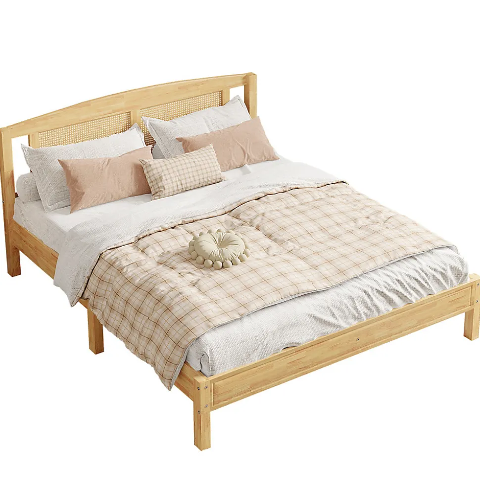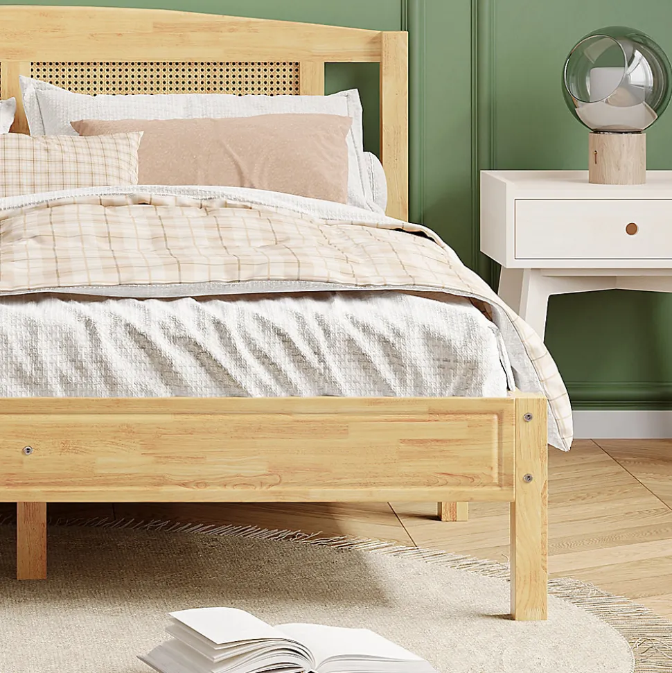 - Design naturel et chaleureux en pin et rotin PE, complété par une tête de lit ornementale et des coussins en filet de rotin pour une ambiance sobre et harmonieuse adaptée aux chambres d’adolescents et d’adultes.