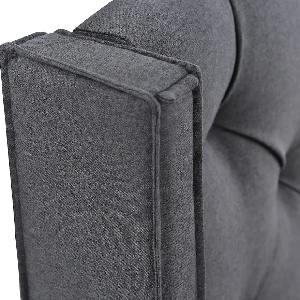 - Design élégant avec tête de lit capitonnée et piquage profond pour un aspect rétro maîtrisé ; revêtement coton gris et rembourrage soft qui limite les angles vifs pour une finition sécurisée.