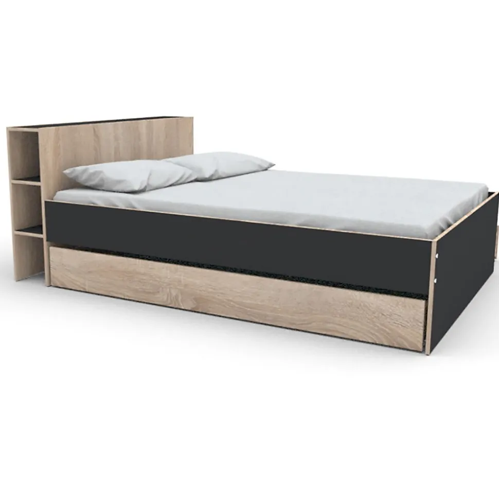 Optimisez la chambre de votre enfant grâce au lit . Son design compact offre plusieurs solutions de rangement : un véritable atout pour les petits espaces.Disposant de 2 tiroirs, il est très pratique pour ajouter du rangement dans la chambre principale sans encombrer la surface au sol. Votre linge de lit et vos affaires ont enfin leur place et sont rangés en un clin d’oeil !Matériel:Cadre : Structure en panneau de particulesFond de tiroir en MDF- Charge maximale : 110 kg.Sommier 2×22 Lattes en bois multiplis.Dimensions:Zone de couchage 160x200cmLongueur:226cmLargeur : 164cmHauteur : 80cmATTENTION le matelas et la décoration ne sont pas comprise dans la livraison.*Les couleurs réelles peuvent différer de ceux indiqué dans l’image en raison de la nature des paramètres de couleur de photographier et de moniteur.Support client et SAV en Français – Pas de livraison dans le DOM TOM et la Corse.**Attention la livraison est prévue au pied de l’immeuble ou de la maison et non à domicile.