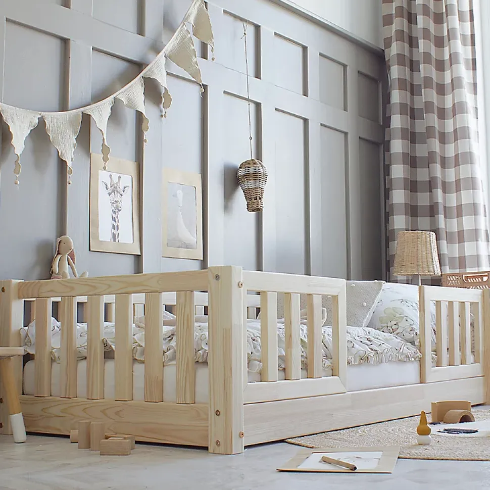 Lit 90×190 barrières et sommier inclus pieds 1 cm Agnès Bois
