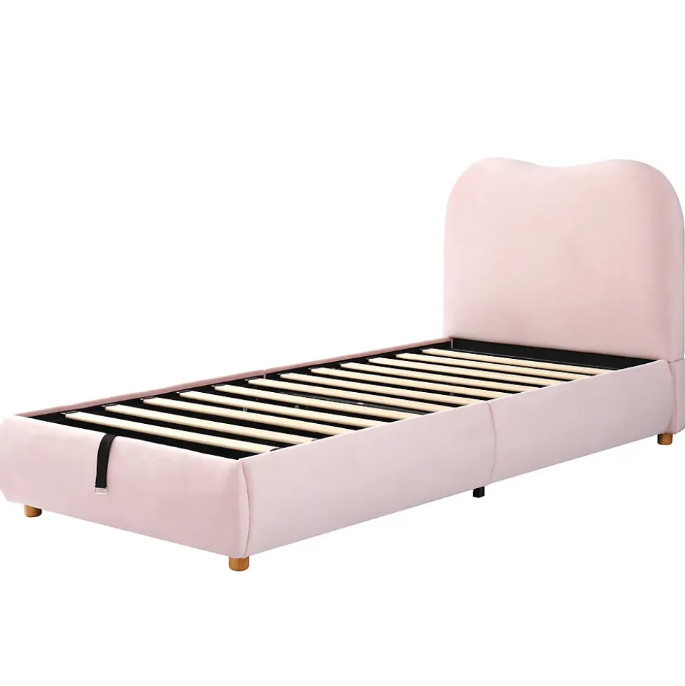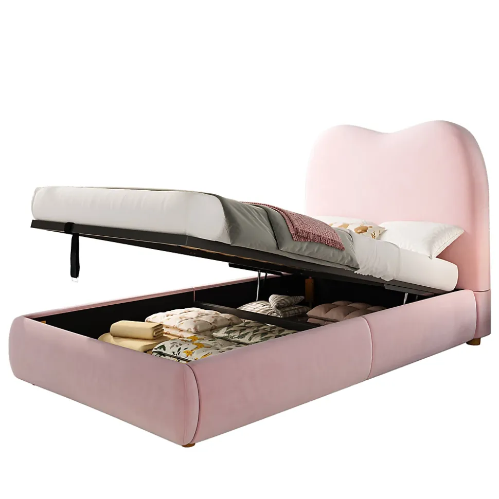 Design & styleCe lit enfant 90×200 cm en velours rose propose un design doux et raffiné aux lignes arrondies, évoquant un petit château de rêve. La tête de lit matelassée de 11 cm apporte un confort moelleux pour la lecture et le repos, tout en créant une atmosphère cosy et accueillante dans la chambre.Fonctionnalité & rangement Ouverture hydraulique intuitive permettant d’accéder d’un simple geste à un vaste coffre de rangement sous le sommier, idéal pour jouets, livres ou linge de saison. Sommier à lattes inclus pour un soutien approprié (matelas non fourni). Capacité de charge maximale 150 kg pour usage quotidien.Matériaux & confortStructure interne conçue pour maintenir la matrice du matelas en place et garantir une stabilité maximale, même pour les enfants actifs. Garniture en mousse haute élasticité offrant un soutien agréable ; bords arrondis polis sur la tête, le pied et le corps de lit pour limiter les risques de choc.Entretien & sécuritéRevêtement en velours au toucher doux et à la texture chaleureuse. Entretien simple : dépoussiérer régulièrement et nettoyer localement avec un chiffon doux, éviter les produits agressifs. Conception pensée pour la sécurité des plus jeunes avec finitions soignées.Installation & livraisonProduit livré démonté en 2 colis pouvant arriver séparément. Montage requis, deux personnes recommandées. Toutes les dimensions sont indiquées à titre indicatif ; consulter la notice fournie pour les instructions d’assemblage et les précautions d’usage.