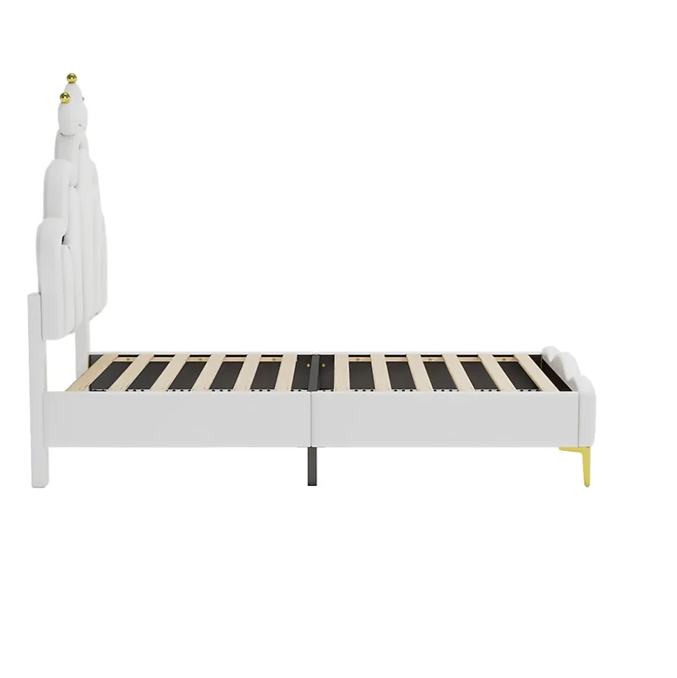 - Design onirique inspiré de nuages avec tête de lit couronnée et revêtement en PU blanc ; finition soignée apportant une ambiance douce et élégante idéale pour chambre d’enfant ou d’adolescent.