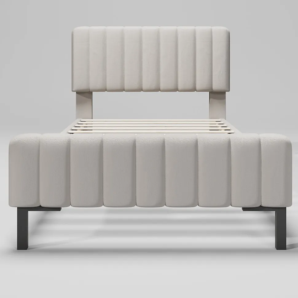 Design & styleCe lit tapissé associe un revêtement en lin gris‑beige à une silhouette sobre et contemporaine, idéale pour une chambre principale ou une chambre d’amis. Les lignes nettes et la tête haute rembourrée (55 cm) apportent confort visuel et appui pour la lecture.Fonctionnalité & confort Sommier à lattes en pin massif (100 %) réparties régulièrement pour un soutien homogène et une bonne ventilation du couchage. Tête de lit réglable sur environ 6 cm, permettant d’ajuster l’inclinaison selon les habitudes de lecture ou de repos. Design avec tête et pied hauts qui limite le déplacement du matelas pendant la nuit.Matériaux & entretienStructure combinant éléments en bois massif et métal pour une assise robuste ; revêtement en lin facile d’entretien. Pour nettoyer, utiliser un chiffon doux et sec ou légèrement humide ; éviter les produits agressifs.Dimensions & compatibilitéDimensions totales : 209x95x101–107 cm (L x P x H). Dimension matelas applicable : 90×200 cm ; épaisseur de matelas recommandée : 16–22 cm. Capacité d’utilisation : jusqu’à 150 kg. Aucun boxspring requis.Installation & livraisonMontage requis, deux personnes recommandées. Produit livré en 1 colis pour la taille 90×200 cm. Contenu du colis : cadre de lit, sommier à lattes (matelas non fourni). Pour d’autres tailles plus larges, le cadre peut être expédié en deux colis arrivant à des dates différentes.