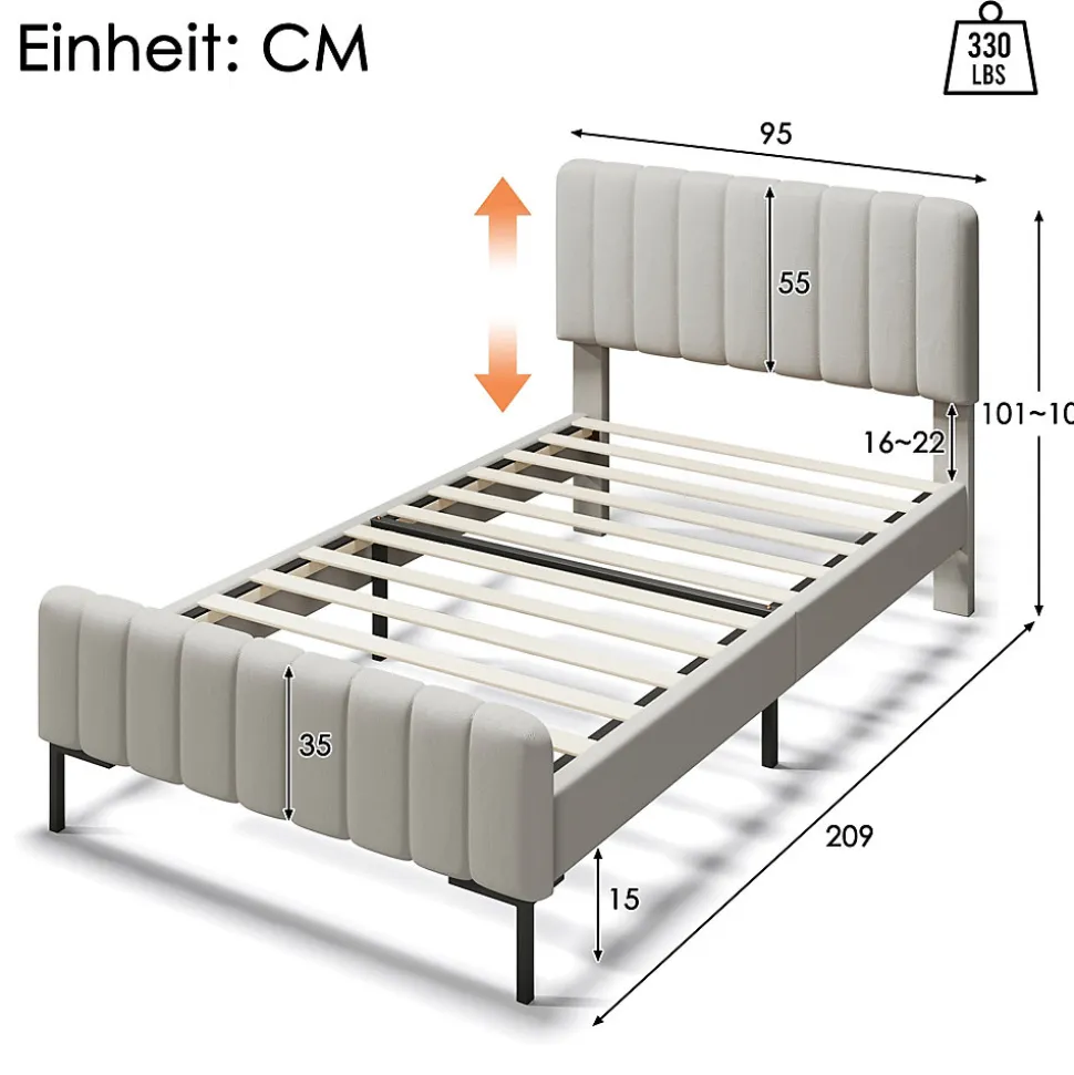 - Montage requis, simple à deux personnes ; livré en 1 colis. Hauteur de tête réglable d’environ 6 cm pour adapter l’appui. Revêtement en lin facile d’entretien au chiffon doux ; conception limitant le glissement du matelas.