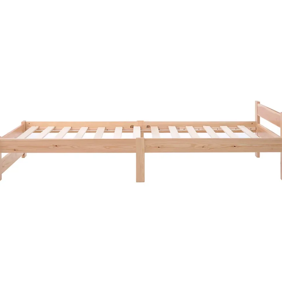 Description Aspect exceptionnel : tous les composants sont parfaitement assortis. Les indentations dans la surface du lit assurent une ventilation optimale, tandis que le bois peut être traité et personnalisé à votre guise. Profitez de l’aspect merveilleux de ce lit en bois massif fait de bois naturel de haute qualité. Apportez la tendance directement dans votre maison : les lits en bois massif font fureur en ce moment, ce lit en bois massif simple et durable dispose d’une structure en pin massif, de pieds et d’un cadre en bois massif. Simple et silencieux : le lit vous offre tout le confort et le soutien dont vous avez besoin sans les fioritures inutiles d’un lit traditionnel. Ses lignes simples et élégantes créent une atmosphère paisible et le lit complète de nombreux styles et intérieurs différents. Vous obtenez toujours une bonne nuit de sommeil, c’est de cela qu’il s’agit! S’adapte à toutes les pièces : le lit indestructible 90×200 cm est le lit simple idéal, le lit d’appoint compact avec une hauteur confortable de 49 cm. Pour votre maison ainsi que les hôtels et chambres d’hôtes. Testé, le lit en bois ne grince pas sous charge. Bonne taille : avec sa taille, le lit convient également aux petites pièces, aucun sommier à lattes supplémentaire n’est nécessaire, car le matelas est directement sur le lit.Détails du produit Taille totale : 205x97x49cm Poids total : 15 KG Matelas assortis (cm) : 200x90cm Capacité de charge (kg):150KG Couleur principale : Naturel Matériau principal : Bois