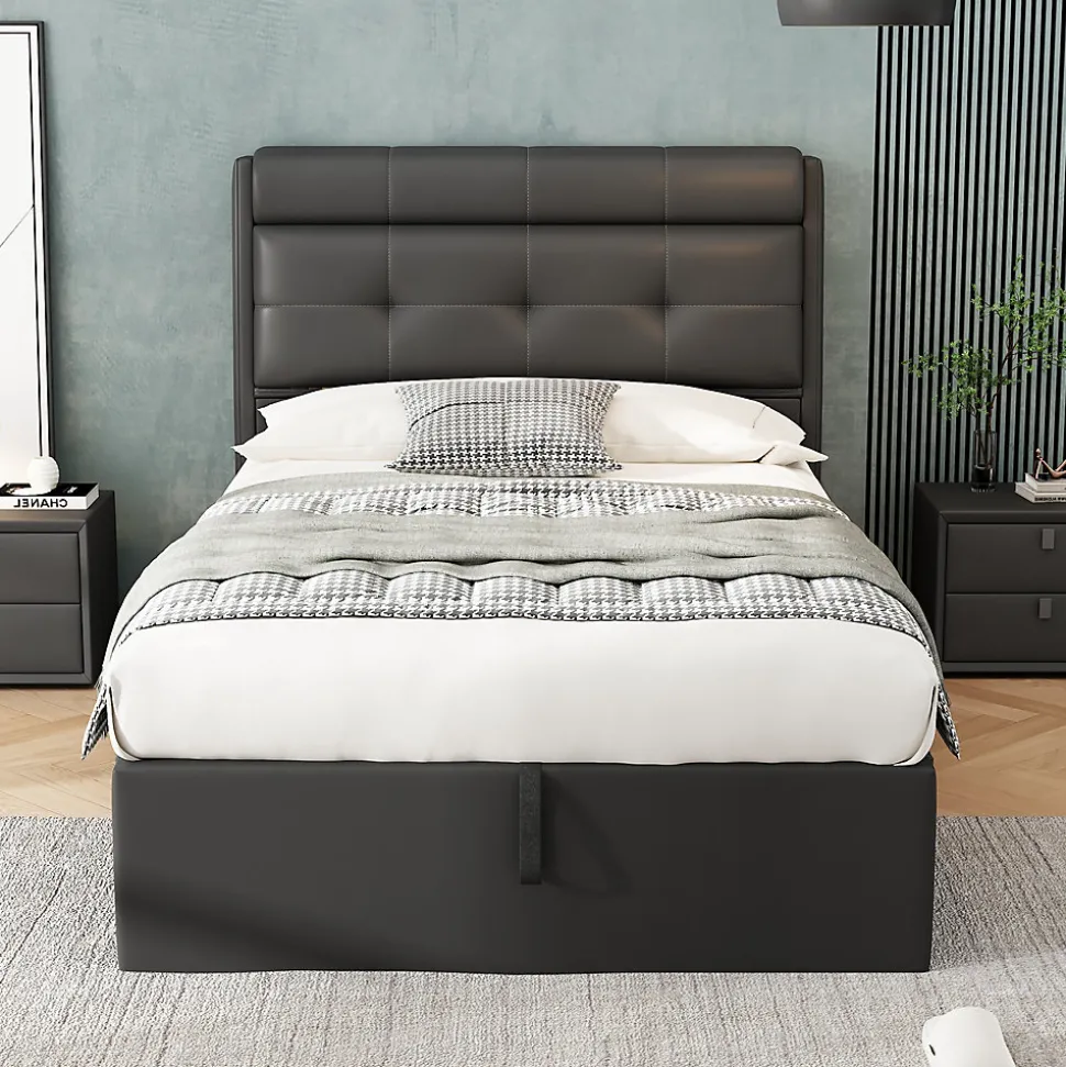 - Design contemporain en PU noir avec tête rembourrée et rangement dissimulé, lignes sobres. Dimensions 90×200 cm, finition facile à entretenir et s’intègre élégamment dans la chambre.
