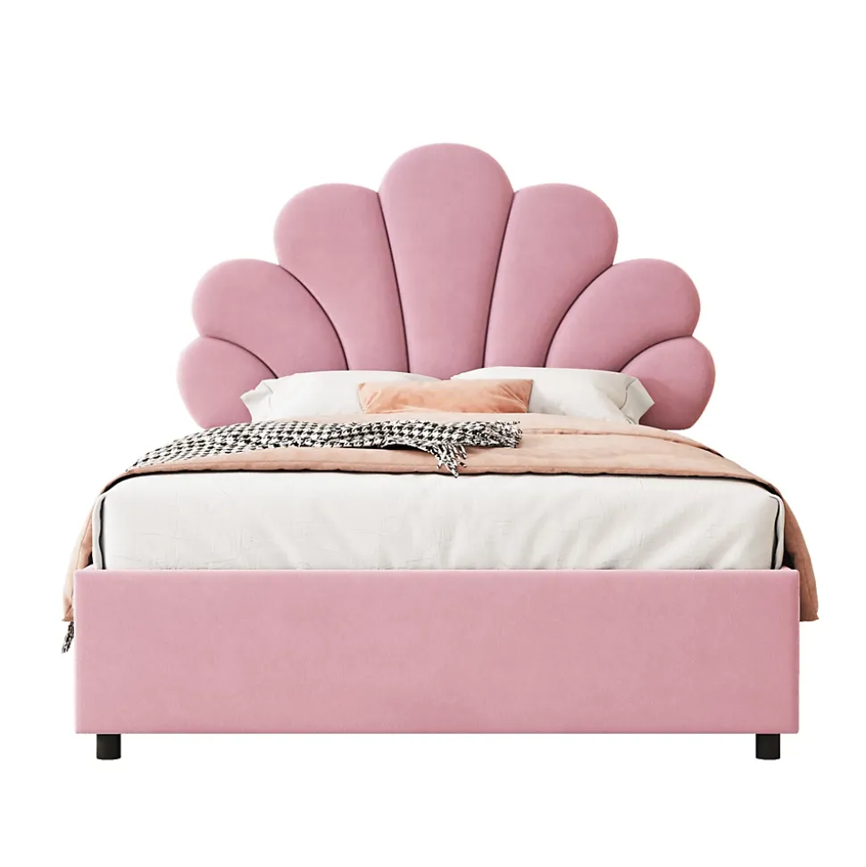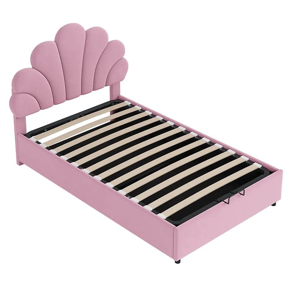 Design & styleCe lit tapissé associe un revêtement en velours doux à une tête de lit d’inspiration florale, offrant une esthétique tendre et raffinée adaptée aux chambres contemporaines. La teinte rose apporte une atmosphère chaleureuse sans surcharge visuelle, tandis que les lignes épurées s’intègrent facilement à différents décors.Fonctionnalité & rangement Coffre de rangement profond de 28 cm, accessible par un mécanisme hydraulique double pour un relevage aisé et sécurisé. Sommier à lattes (12 lames) offrant une bonne ventilation du couchage et une assise stable pour la literie. Capacité de charge annoncée jusqu’à 200 kg, adaptée pour un usage quotidien et un rangement optimisé des draps, vêtements ou jouets.Matériaux & entretienCadre en panneaux et MDF, renfort métallique en croix pour une meilleure tenue structurelle. Tissu : velours agréable au toucher et compatible avec un entretien courant à l’aide d’un chiffon doux ou d’un aspirateur type brosse. Éviter les produits abrasifs et les nettoyages à sec intensifs.Dimensions & recommandationsDimensions totales 203 x 94 x 115 cm (L x l x H). Convient pour matelas 90 x 200 cm (mousse ou ressorts) non fourni ; épaisseur recommandée 20–26 cm. Poids colis et produit : poids total du produit environ 41 kg, colis expédiés en 2 paquets. Nombre de lattes : 12.Installation & emballageMontage requis, deux personnes recommandées. Estimation du temps de montage : environ 2 heures. Outils nécessaires fournis (tournevis); il est conseillé d’éviter l’usage d’outils électriques pour préserver les pièces. Produit livré en plusieurs colis pouvant arriver séparément.