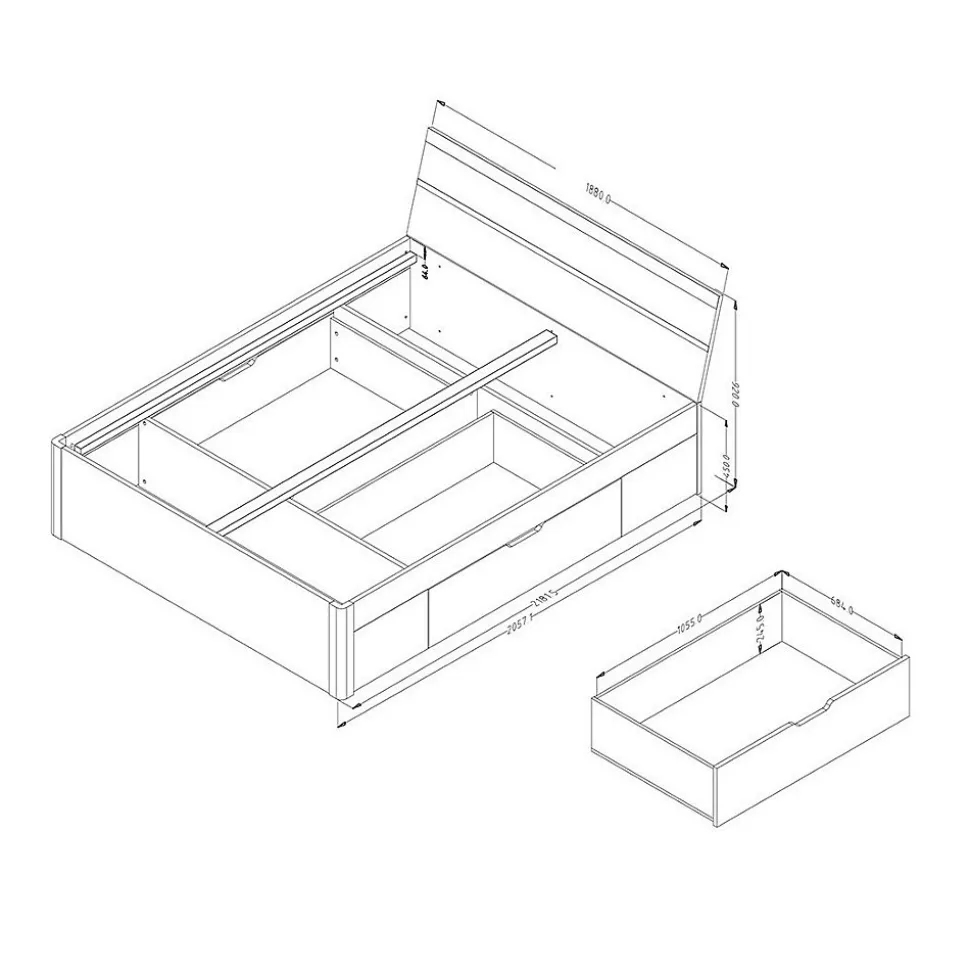 Lit adulte 180×200 avec tiroirs intégrés. Couleur Chêne clair et blancCe lit 2 places de la collection EOS fera de votre chambre un véritable cocon, vous permettant de vous détendre et de vous reposer. N’attendez plus, il apportera immédiatement confort et élégance à votre chambre grâce à sa forme design.- COMPOSITION : Lit + tête de lit + sommier + tiroirs- DIMENSIONS : Lit + tête de lit : largeur 186 x Longueur 204,4 x Hauteur 90cm. (Couchage 180×200 cm)- COLORIS : Chêne clair et blanc- Normes : Normes CE- STRUCTURE: Panneaux de particules et MDF de première qualité.- CARACTÉRISTIQUES : Lit 180×200 avec tiroirs intégrés. ****MATELAS NON INCLUS**** Lit disponible dans plusieurs dimensions et différents coloris. Retrouvez également le reste de la collection EOS dans notre boutique : Armoire, commodes, ensemble de chambre complet…