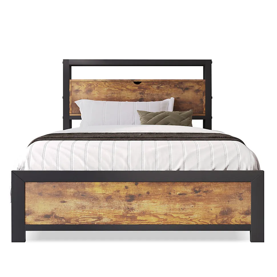 Dimensions totales :216x95x100cm(LxLxH)Capacité de charge :120KG/264 LBSCouleur :NeutralMatériau du plateau :Métal+Panneau composite de fibres de bois à densitéHauteur du pied de lit :35cmSurface de couchage :90×200 cmNombre de paquets : 1Montage nécessaire : OuiType de matelas :Sans matelasTête de lit de rangement :La table de chevet est équipée de compartiments de rangement en grain de bois pour ranger facilement livres, téléphones portables et autres petits objets, augmentant ainsi l’espace de rangement dans la chambre. Il y a également deux niveaux au-dessus de la tête de lit pour ranger les collections.Espace de rangement sous le lit :L’espace au sol de ce lit est de 26,5 cm, ce qui vous permet de placer librement des boîtes de rangement pour ranger les vêtements et les chaussures de la saison. En même temps, l’espace au sol est libre et facile à nettoyer et à dépoussiérer, ce qui facilite grandement le nettoyage sanitaire au quotidien.Un design unique :La combinaison de la tête de lit et du pied de lit de style rustique avec des lattes métalliques rétro crée une forte touche industrielle / rustique, ajoutant une touche industrielle et unique à votre chambre. La tête de lit est fabriquée à partir d’un plateau en bois résistant à l’eau et aux rayures.Solide et durable :La méthode de soudage de la structure de la plate-forme et l’utilisation de boulons solides sont adoptées dans la conception. Les 12 lattes métalliques solides et les 6 pieds de support indépendants peuvent supporter jusqu’à 120 kg.Instructions complètes et simples :Le lit est livré emballé à plat pour faciliter la livraison, et nous fournissons des instructions utiles, étape par étape, pour faciliter l’auto-assemblage. Toutes les pièces sont fournies dans une boîte.Remarques :En raison des mesures manuelles, une erreur de 2 à 3 cm peut se produire.
