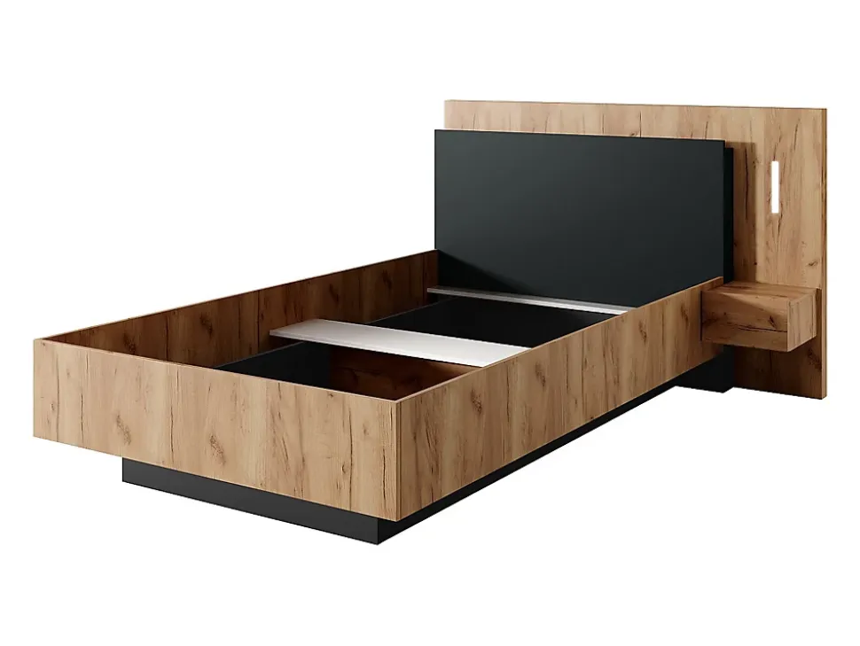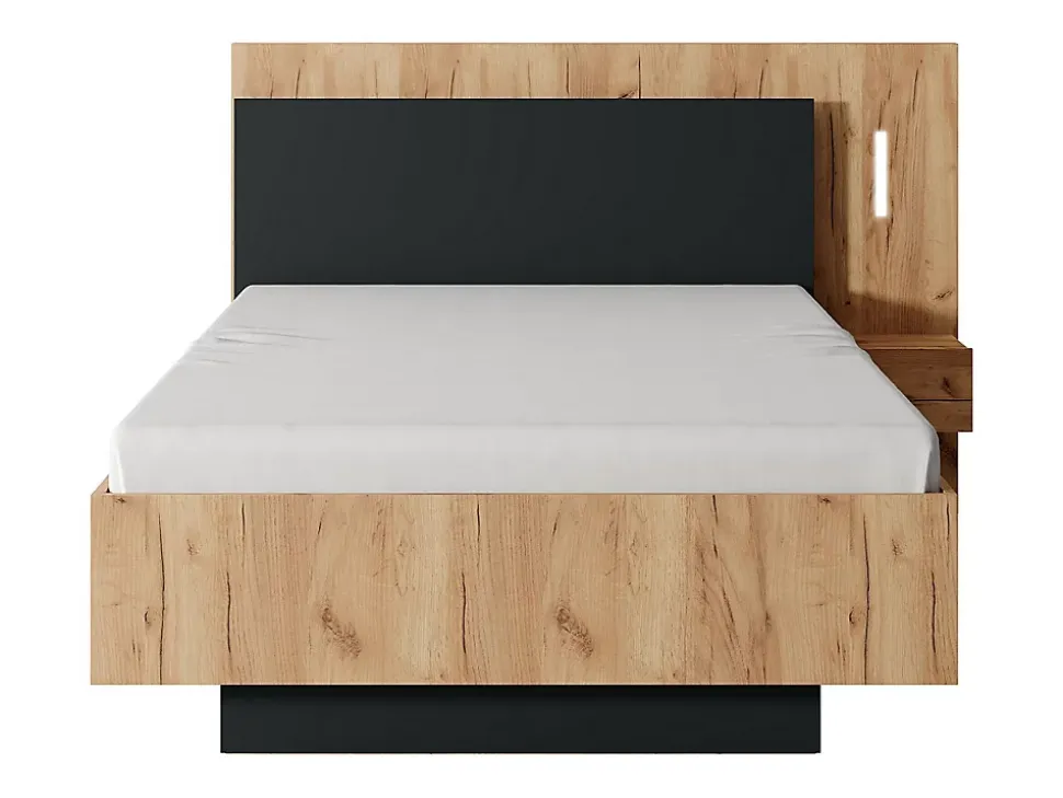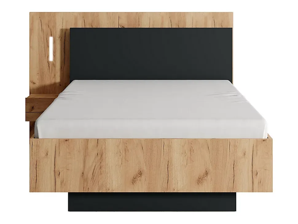 - Lit avec chevets 120 x 200 cm – Avec LEDs – 2 tiroirs – Structure : Panneaux de particules – Coloris : Anthracite et naturel – Dimensions : L220 x P157 x H102 cm – Style : contemporain + Sommier – Un intérieur harmonieux et épuré avec FRANCOLI !