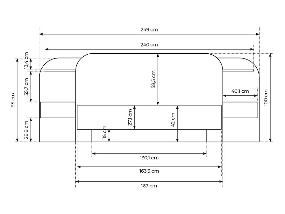 Transformez votre espace pour plus de confort et de raffinement en choisissant le lit JUVISIA, qui allie à la perfection l’utile à l’agréable. Son astucieux système de rangement, avec ses tables de chevet intégrés et ses tablettes, simplifie l’organisation de vos effets personnels.1 x Cadre de lit JUVISIACaractéristiques Couleur (nuance) : Naturel clair, Noir Matière (précision) : Panneau de particule Finition : Mélaminé Taille (couchage) : 160 x 200 cm Nombre de places : 2 places Avec leds Couleur des LEDs : Blanc Type de commande : Interrupteur Type de branchement : Prise secteur Sans matelas Avec chevet Type de rangement : 2 tiroirs, Tablette 2 tablettes Tiroir coulissant Produit : Fabriqué en Europe À monter soi-même Puissance LEDs : 12V Charge maximale d’un tiroir : 2 kg Charge maximale d’une tablette : 2 kg Charge maximale d’un chevet : 2 kg : Ce lit est compatible avec tous les matelas et sommiers de 160×200 cmDimensions Longueur : 249 cm Hauteur : 95 cm Profondeur : 223 cm Hauteur de couchage : 42 cm1 x Cadre à lattes KALISTACaractéristiques Couleur (nuance) : Noir Matière (précision) : Métal Epaisseur métal : 1.2 mm Taille (couchage) : 160 x 200 cm Nombre de places : 2 places Sans pieds Technologie (sommier) : Lattes actives Nombre de lattes : 38 lattes Matière des lattes : Bois (peuplier) Charge maximale supportée : 250 kg À monter soi-même : Cadre métal laqué epoxy cintré sur chantDimensions Longueur : 198 cm Hauteur : 5 cm Profondeur : 158 cmLivraisonLors de la livraison, il est conseillé de vérifier que le bon nombre de colis a été livré.Colis1 x Cadre de lit JUVISIAColis n°1 : Longueur 179 cm, Largeur 107 cm, Hauteur 6 cm, Poids 52 kg. Colis n°2 : Longueur 214 cm, Largeur 34 cm, Hauteur 14 cm, Poids 45 kg. 1 x Cadre à lattes KALISTAColis n°1 : Longueur 205 cm, Largeur 33 cm, Hauteur 7 cm, Poids 20 kg.