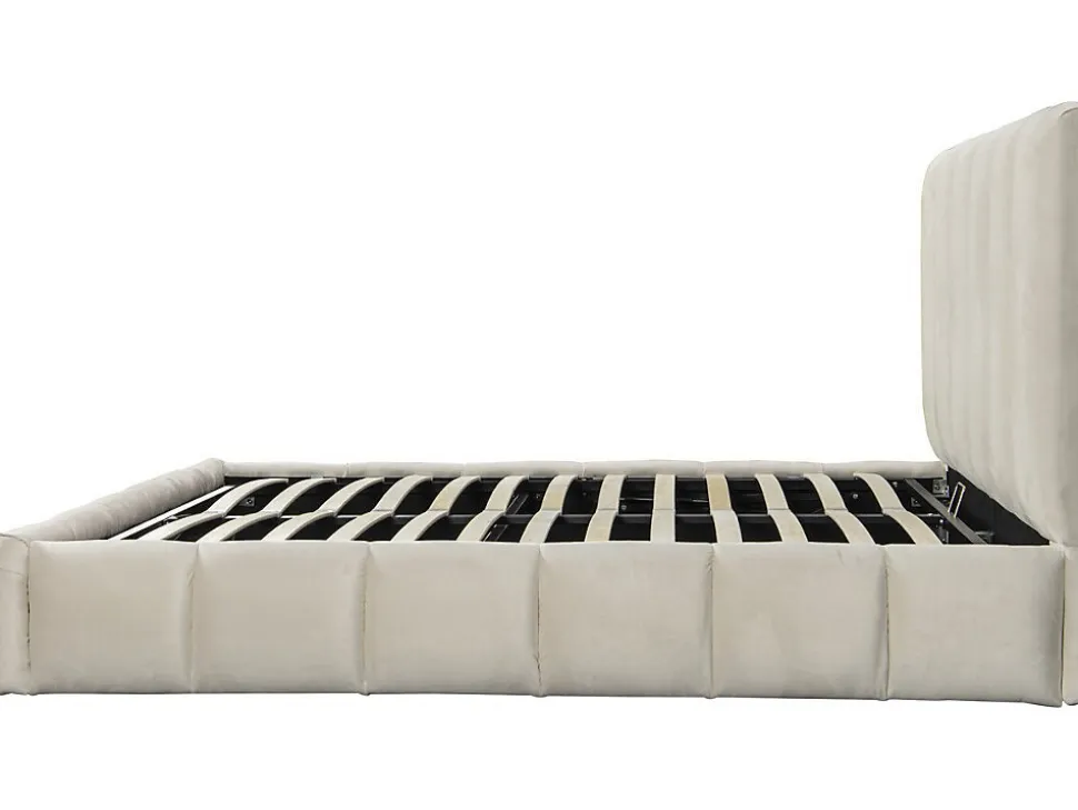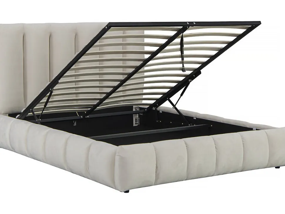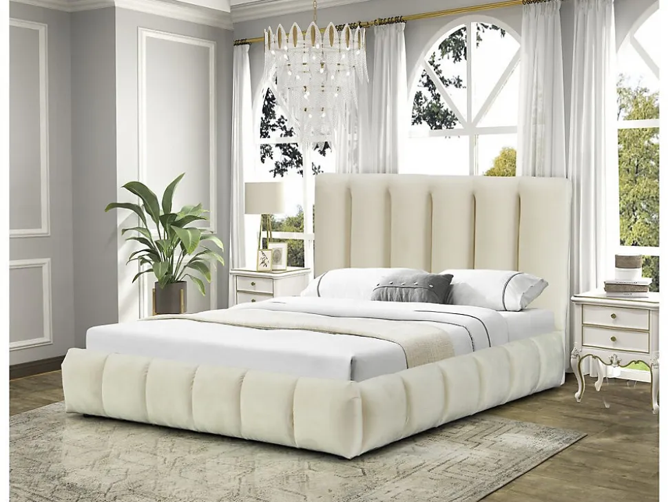 Lit avec coffre « Annie » – 221 x 198 x 121 cm – BeigeDécouvrez notre lit « Annie » doté d’un coffre astucieux, combinant style et fonctionnalité. Ce lit élégant vous offre un espace de rangement discret pour garder votre chambre bien organisée, tout en garantissant un sommeil confortable. Optez pour la solution parfaite pour gagner de l’espace sans compromettre le design et profitez d’une chambre à coucher à la fois esthétique et pratique. Lit double en velours avec coffre « Annie » – 180 x 200 cm – Coloris Beige – Sommier à lattes inclus – 24 lattes – Dimensions: 221 x 198 x 121 cm .Descriptif: Découvrez notre lit pratique et élégant, doté d’un coffre secret pour une chambre organisée et une nuit paisible. Le compromis parfait entre style et fonctionnalité.Matière(Filtre): Velours.Matières: Velours.Structure: boisCouleurs: beigeFinition: Beigecouleur (filtre): BeigeDimensions: 221 x 198 x 121 cmLongueur: 221 cmLargeur: 198 cmhauteur: 121 cmDimensions du couchage: 180×200 cmDimensions (Filtre): 180 x 200 cmSommier: inclusSommier: OuiDimensions des lattes: Dimensions des lattes : 885 x 54 x 10 cmLattes: 26Tête de lit: Tête de lit : L 198 x H 123 cm, Epaisseur tête de lit : 14,5 cmÉclairage LED: Non.Tiroirs: Non.Coffres: 1 coffrepieds: 4, Dimensions des pieds : L 201 x H 34,5 cmPoids: 89.4 kgColisage: 2 colis : – 2,01 x 1,22 x 0,16 m, 59 kg – 2,13 x 0,4 x 0,38 m, 42,5 kg