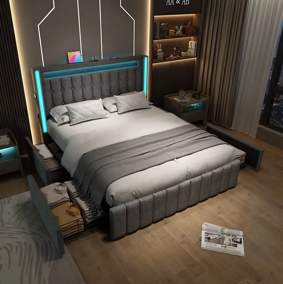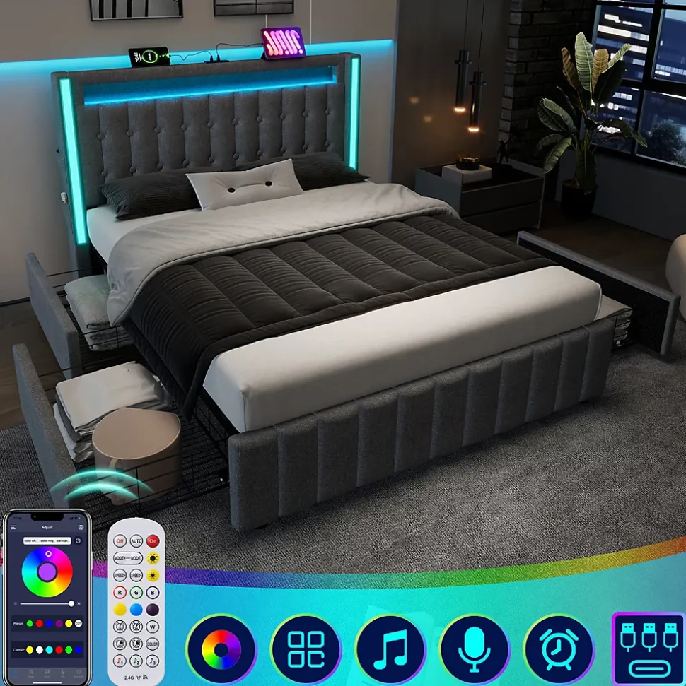 - 【Lit Multifonctionnel】Ce lit combine recharge USB, éclairage LED et rangement intelligent dans un design pratique et esthétique, optimisant l’espace de la chambre et facilitant l’organisation quotidienne tout en améliorant le confort.