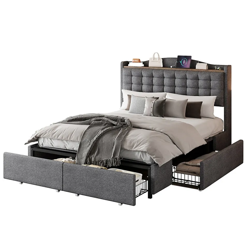 - 【Rangements Spacieux】 Doté de quatre tiroirs généreux sous le lit, cet espace permet de stocker linge de lit et vêtements efficacement, facilitant l’organisation de la chambre et maximisant l’usage de l’espace disponible.