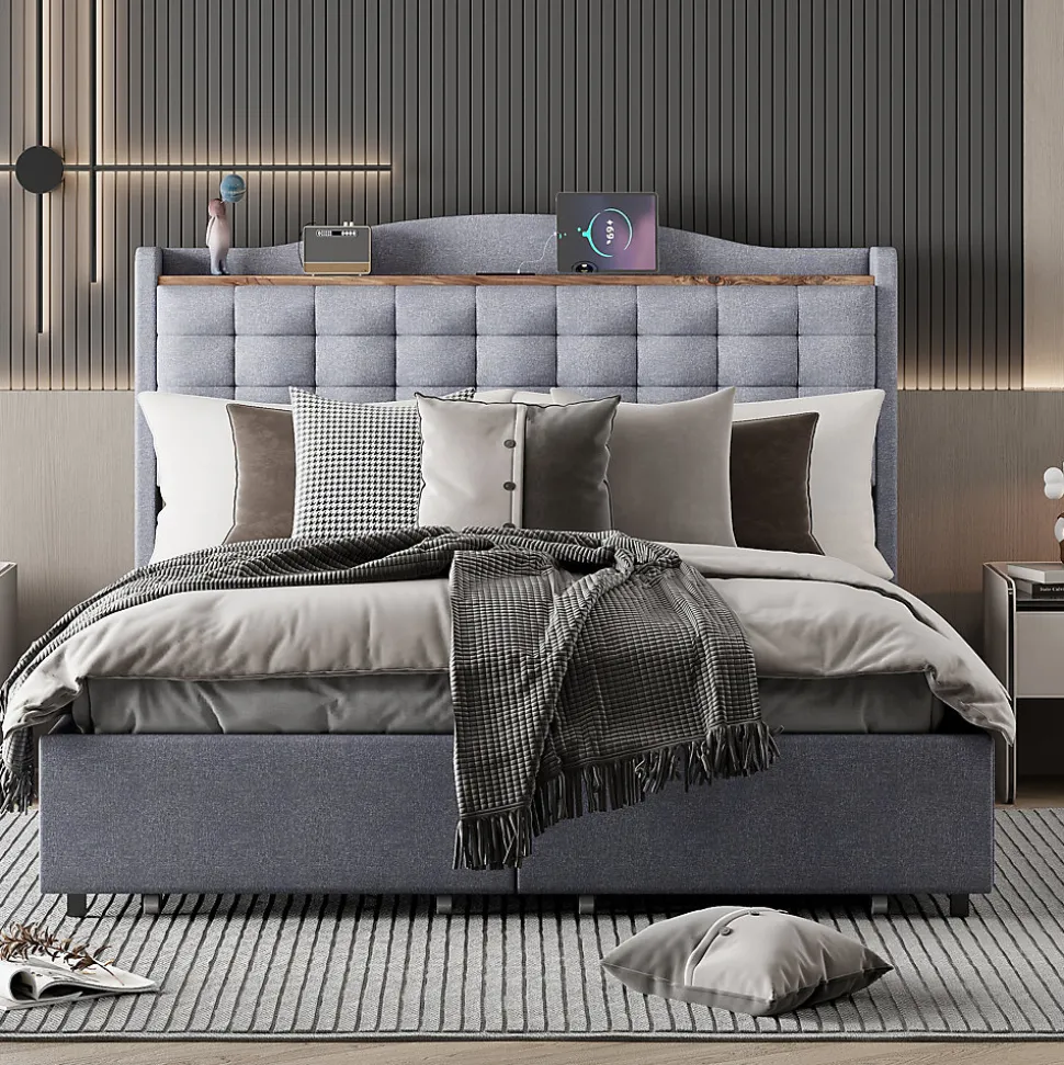 - 【Bett Multifunktional】 Ce lit rembourré intègre un port USB et une tablette au niveau de la tête, permettant de garder vos appareils et accessoires à portée de main pour un confort optimal et une organisation simplifiée.