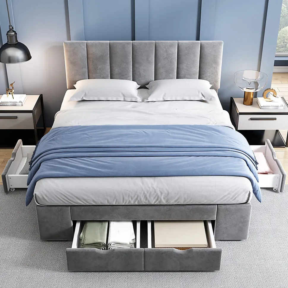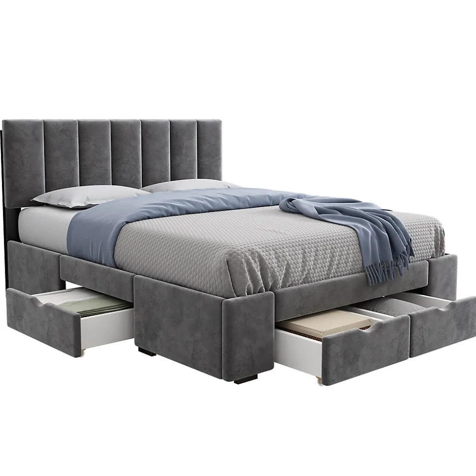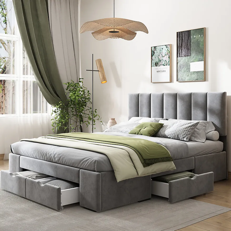 - 【Rangement Pratique sous le Lit】 Le lit est équipé de quatre tiroirs à roulettes pour un rangement facile de vos draps, vêtements et autres objets. Optimisez l’espace de votre chambre tout en gardant tout à portée de main.