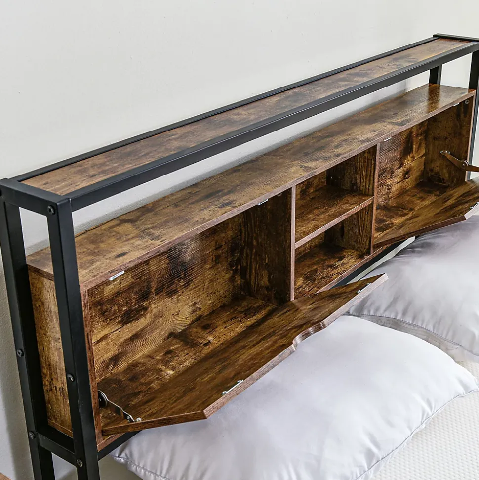 - 【Design Unique et Industriel】 Le mélange du métal rétro et du bois dans la tête et le pied du lit offre une touche industrielle qui complète parfaitement une chambre moderne, créant une atmosphère élégante et accueillante.