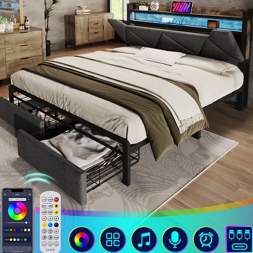- 【Station de charge avancée】 Trois ports USB et un Type-C intégrés à la tête de lit, permettant de recharger facilement plusieurs appareils sans câbles emmêlés sur la table de nuit.