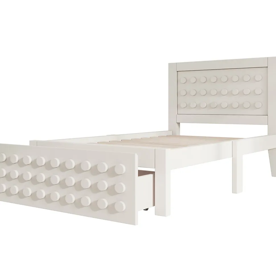 - 【Design Ludique et Original】 La tête et le pied de lit affichent un motif créatif en blocs avec des panneaux rectangulaires et des détails ponctués, offrant une esthétique attrayante qui stimule l’imagination des enfants et égaye leur chambre.