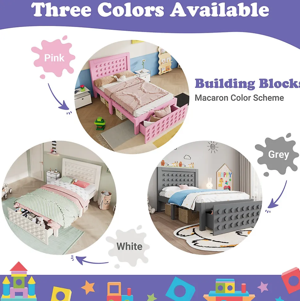 - 【Design Ludique et Original】 La tête et le pied du lit présentent un motif en blocs rectangulaires avec des détails ponctués, offrant un aspect ludique et visuellement captivant qui émerveillera les enfants tout en personnalisant leur chambre.